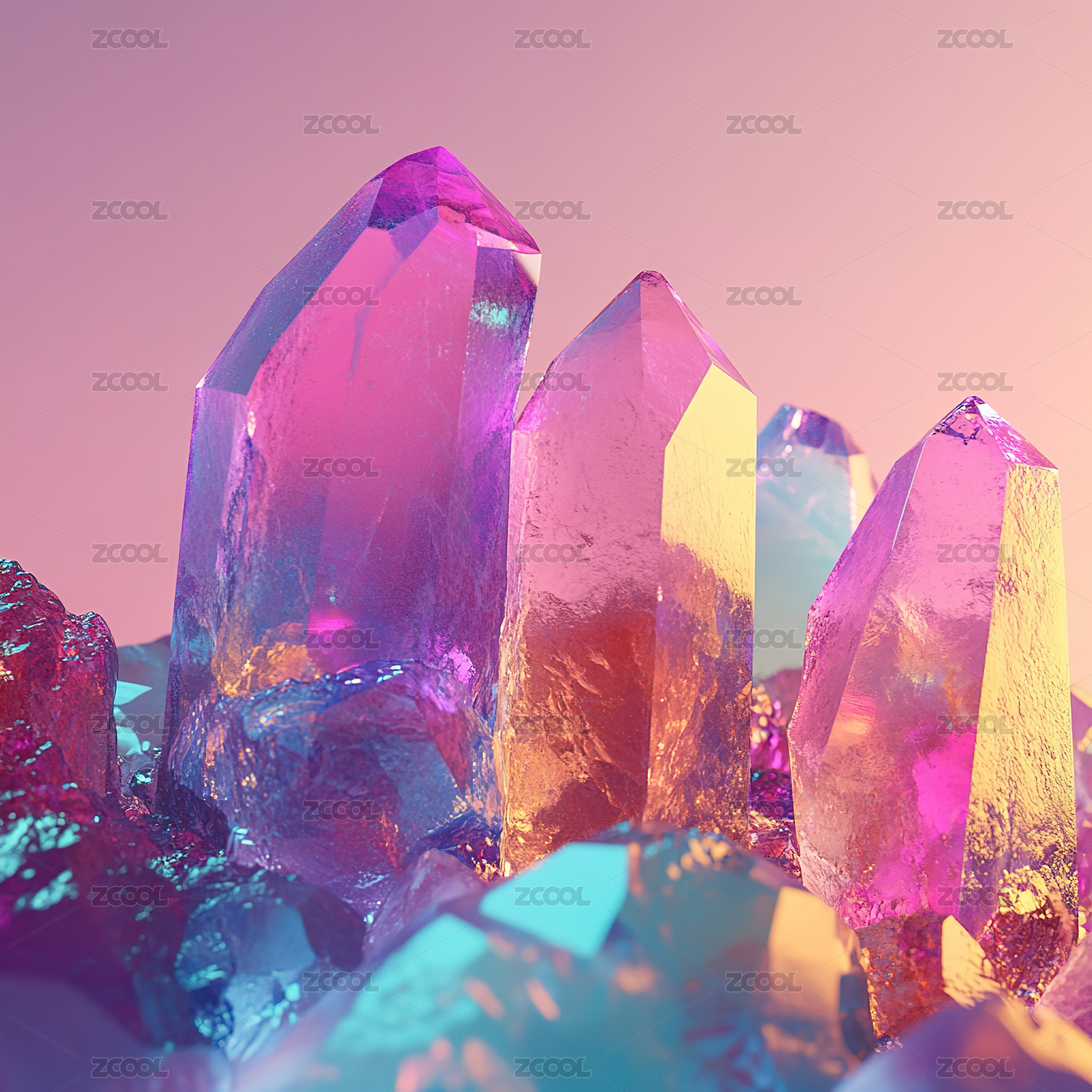 彩色水晶矿物展示场景