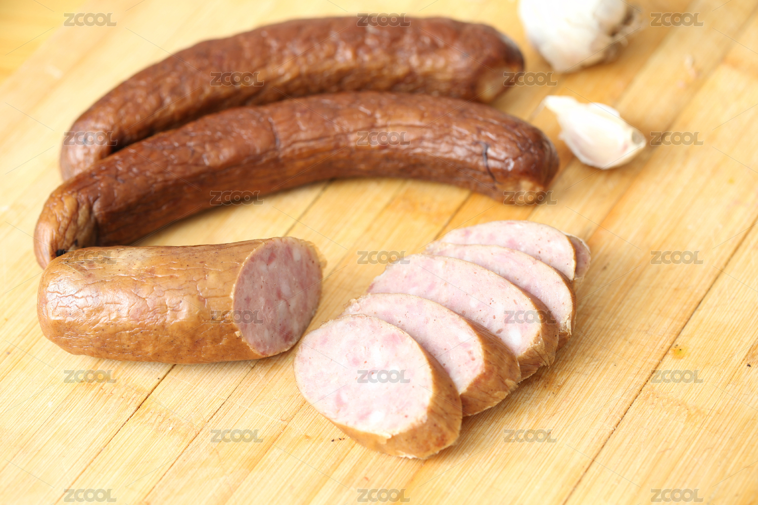 案板上切开的广味香肠