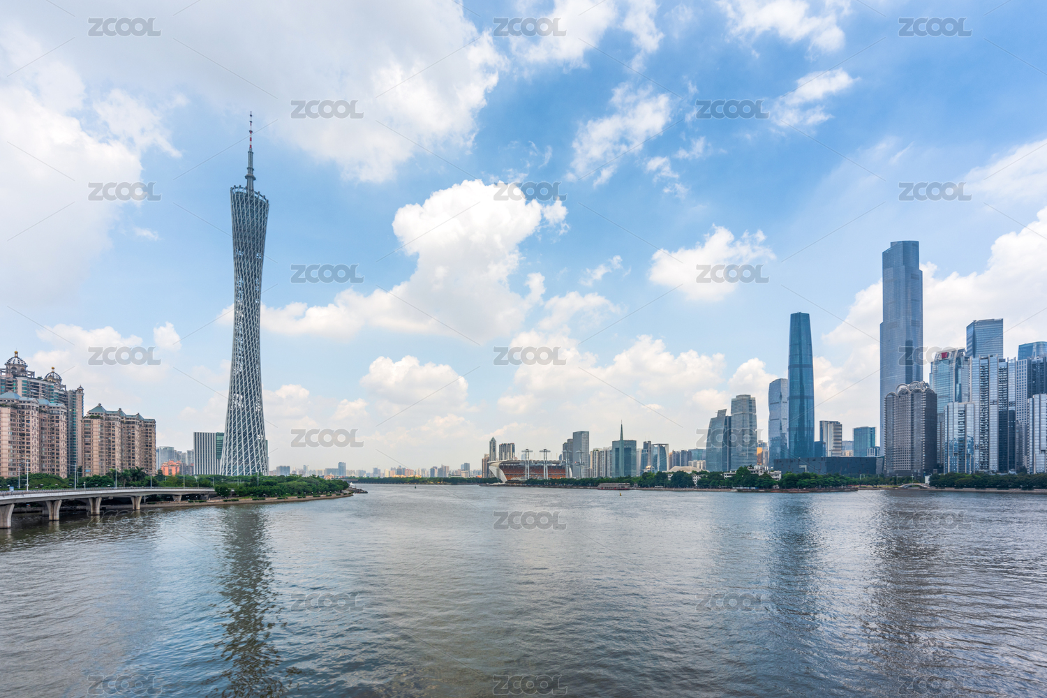 广州珠江两岸广州塔东塔西塔建筑群天际线