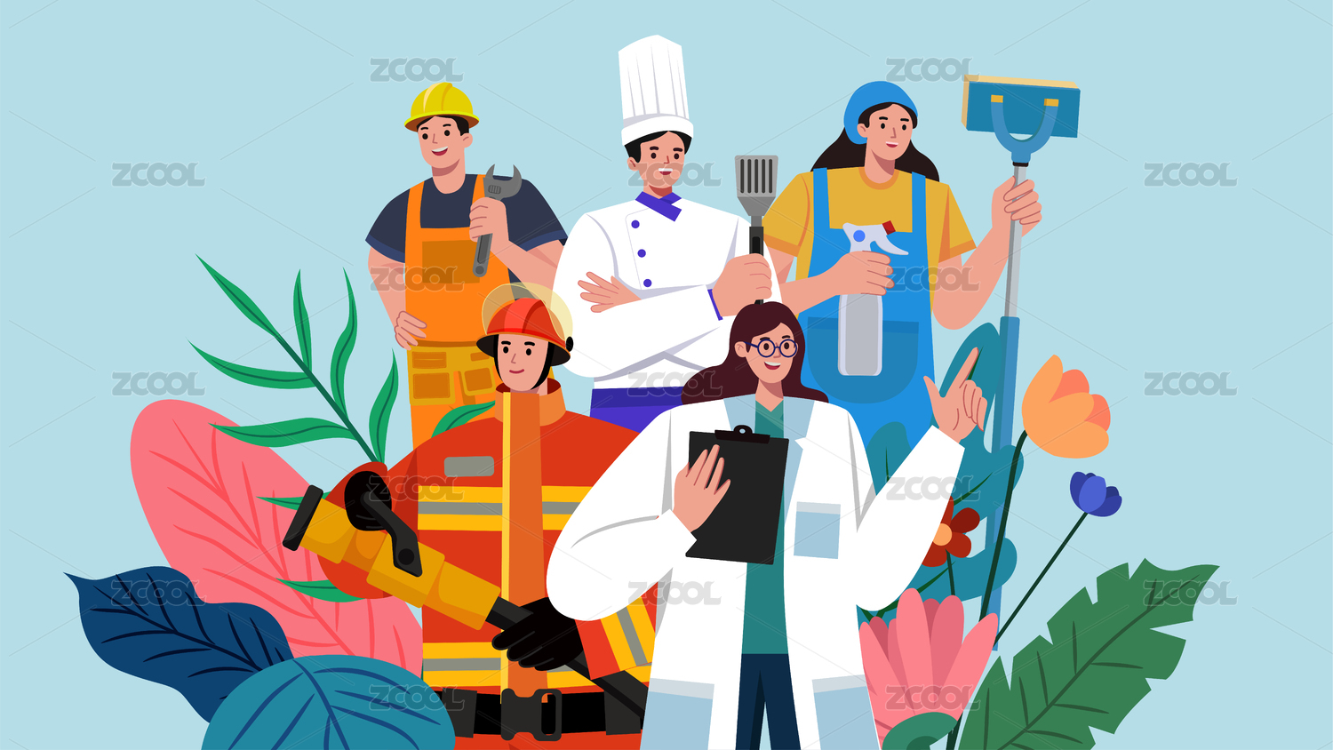 五一劳动节职业人物致敬城市劳动者矢量插画