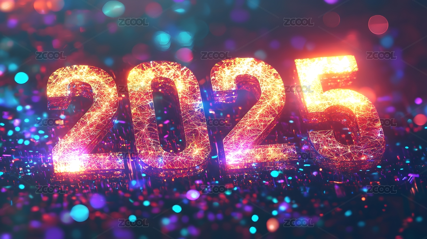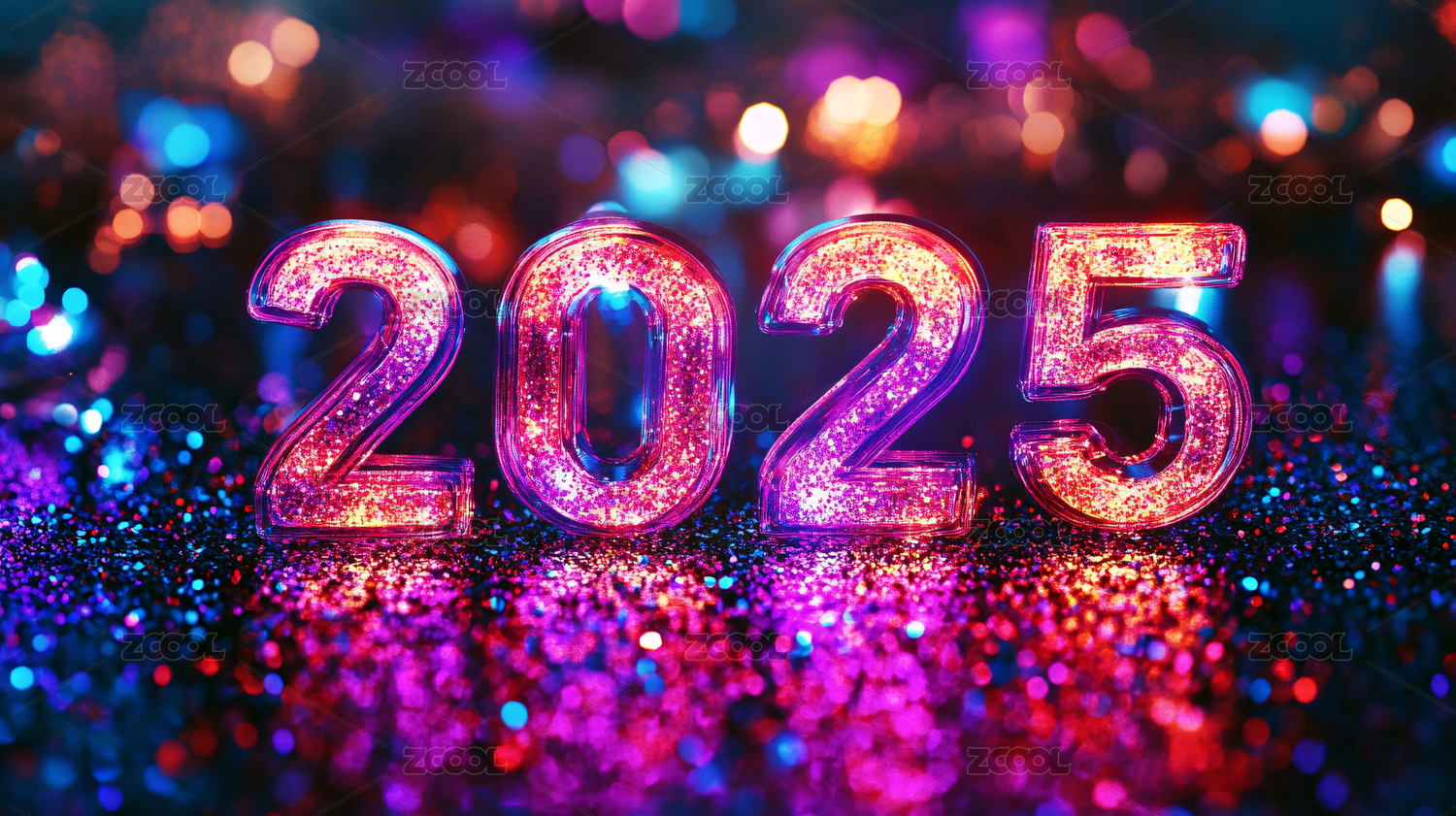 2025,数字,年份,炫彩,霓虹灯,极简,彩色,标识,新年,快乐