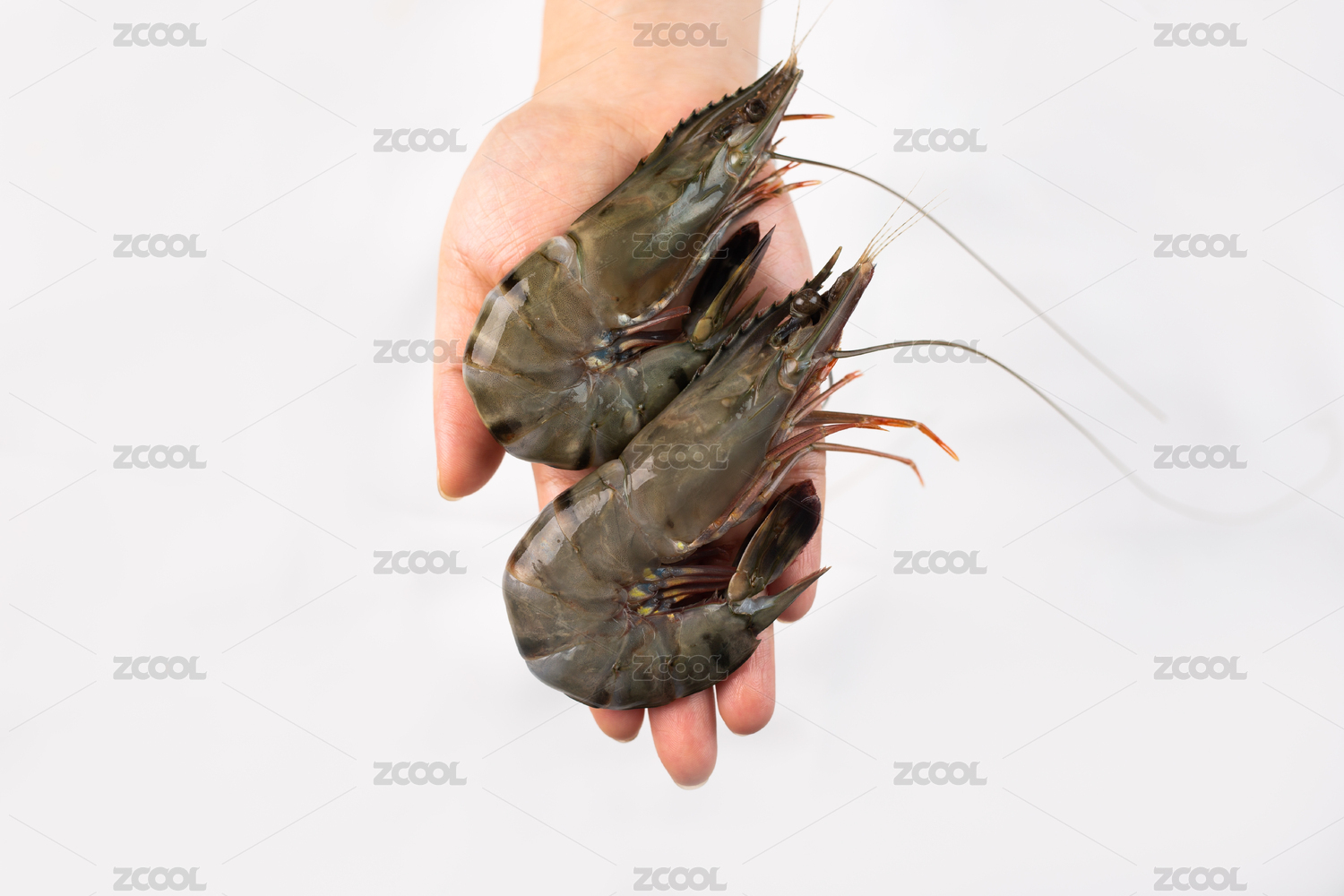 活的新鲜生鲜 一整只 黑虎虾 深色背景