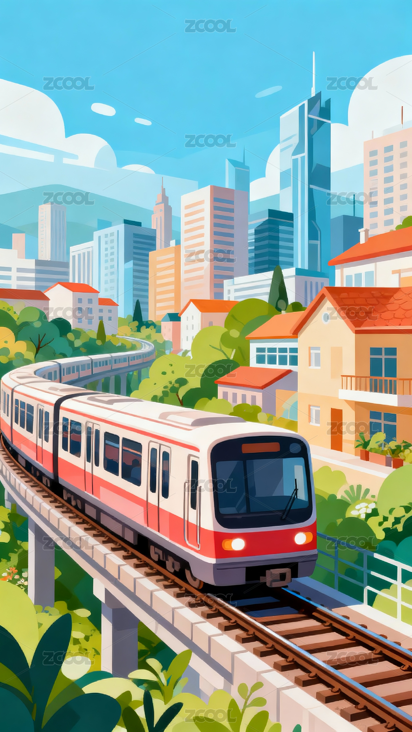 夏季乘坐火车旅游出行欣赏户外风景矢量插画