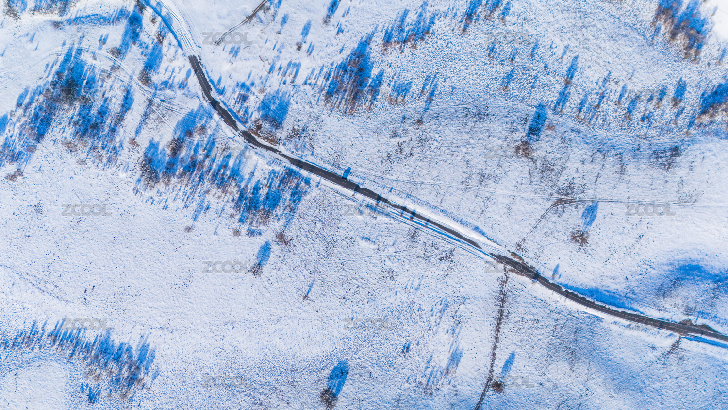 冬季内蒙古乌兰布统蓝天白云雪景航拍