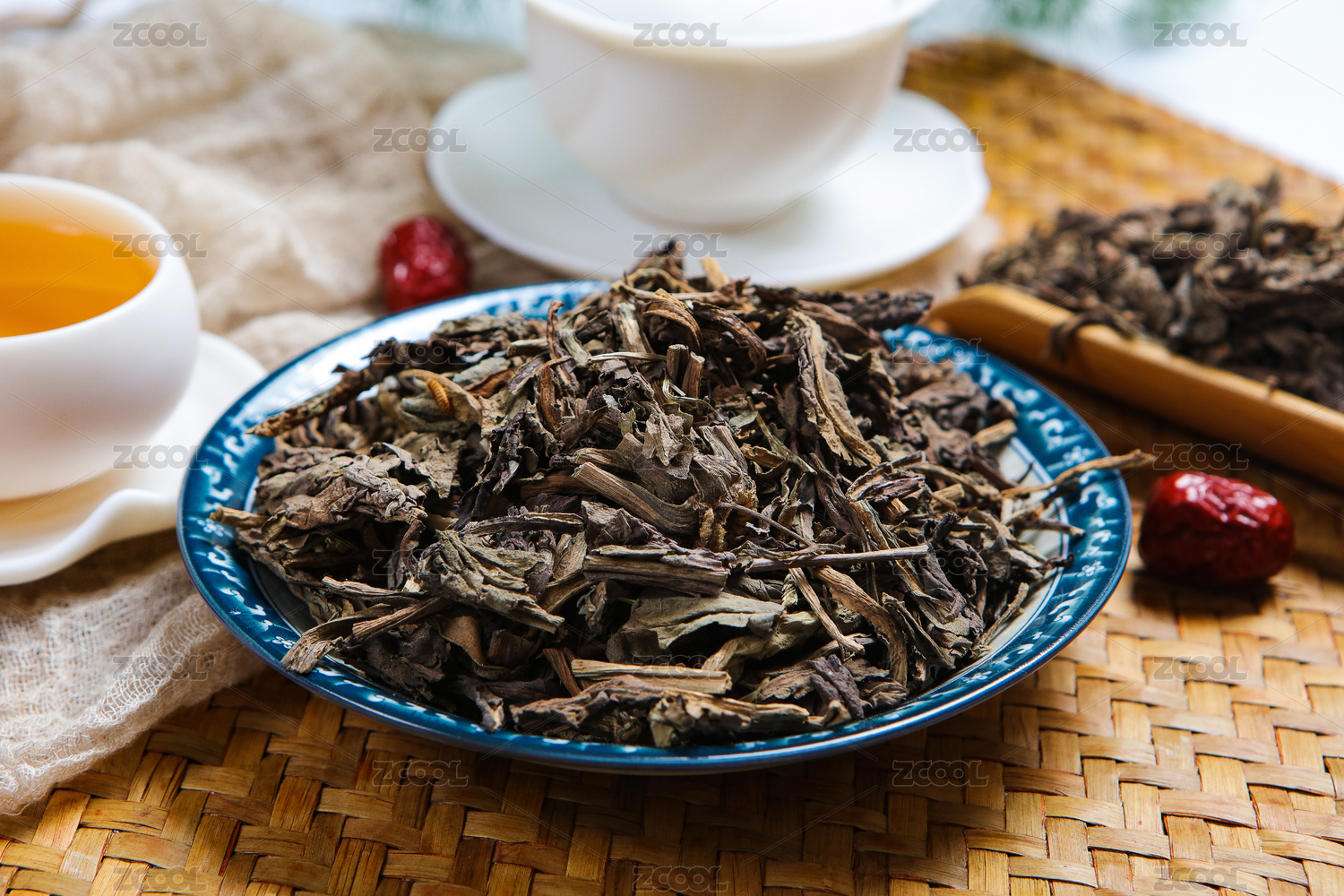 红木茶几上的茶叶