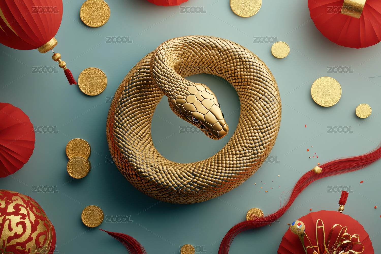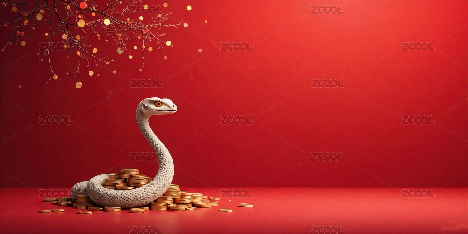 AIGCTP2024,红色,背景,雕塑,金黄色,金币,树,树枝,灯笼,场景