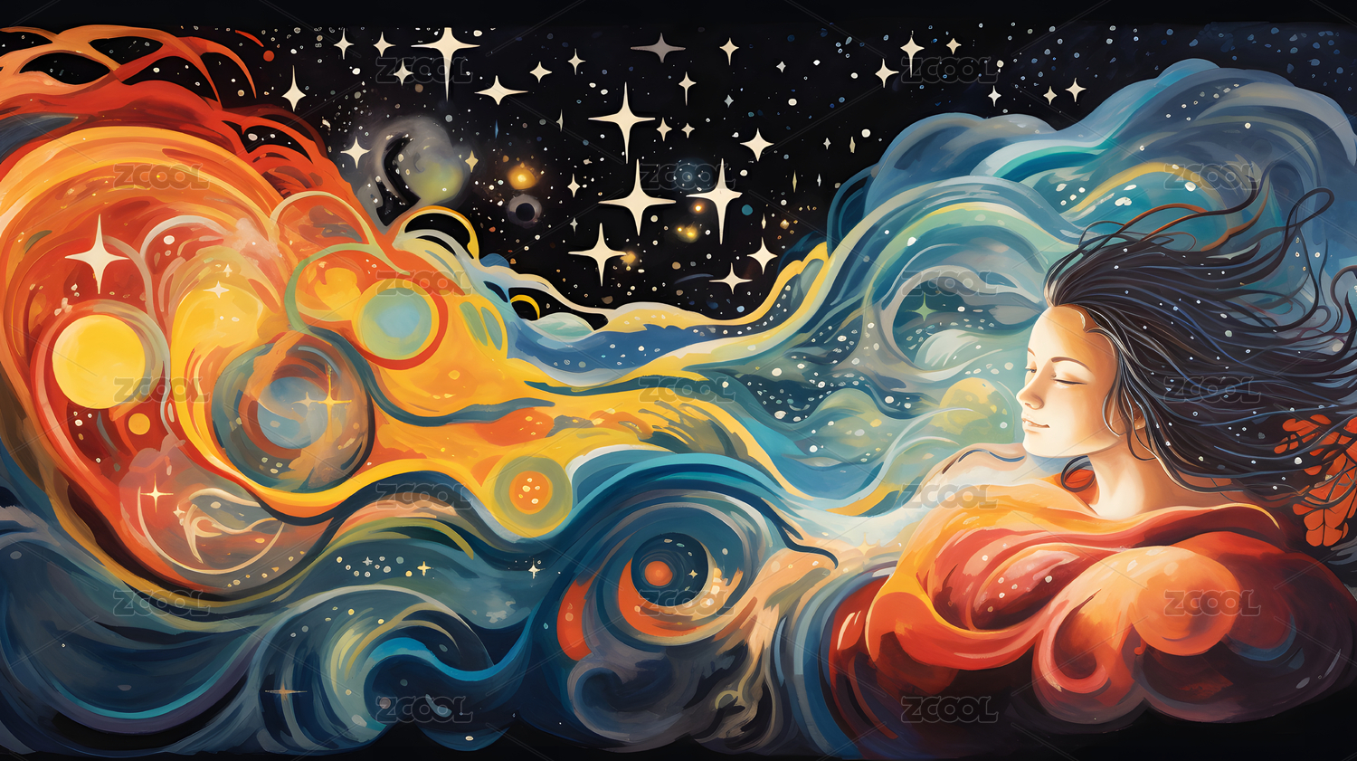 超现实主义银河梦幻璀璨的星云女孩插画