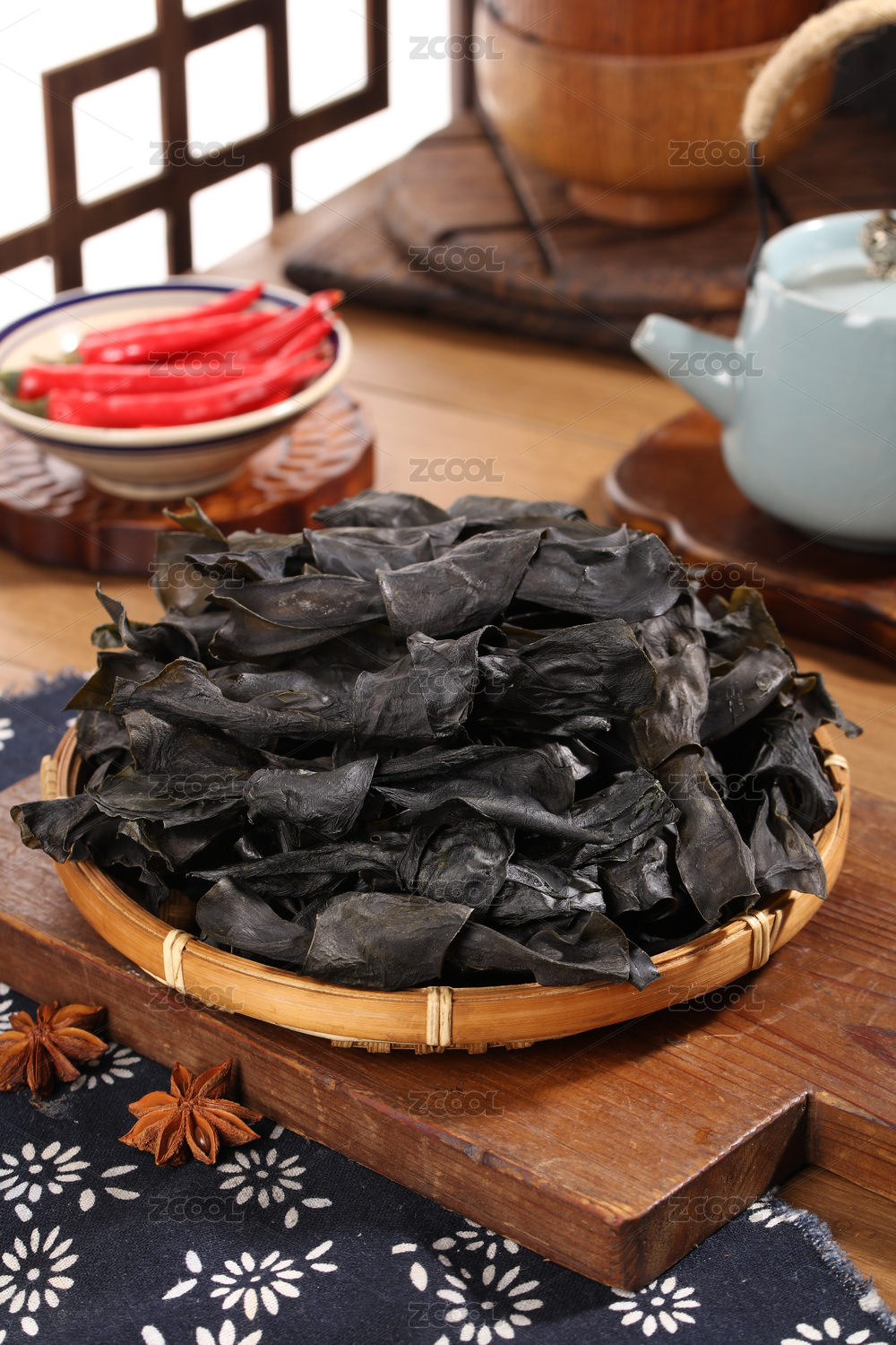 放在竹篮子里的蔬菜干制品木耳