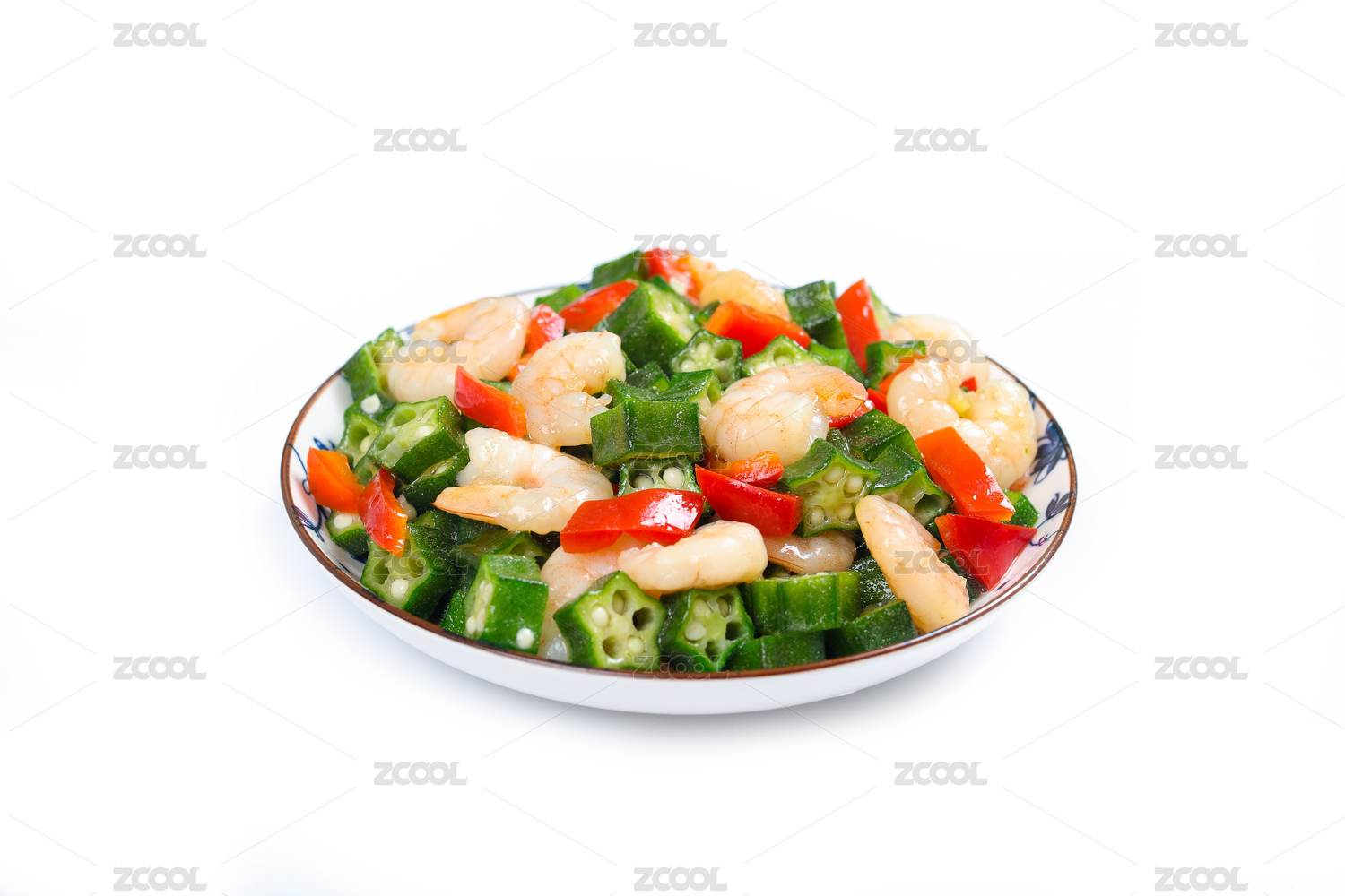 家常小炒菜肴秋葵炒虾球