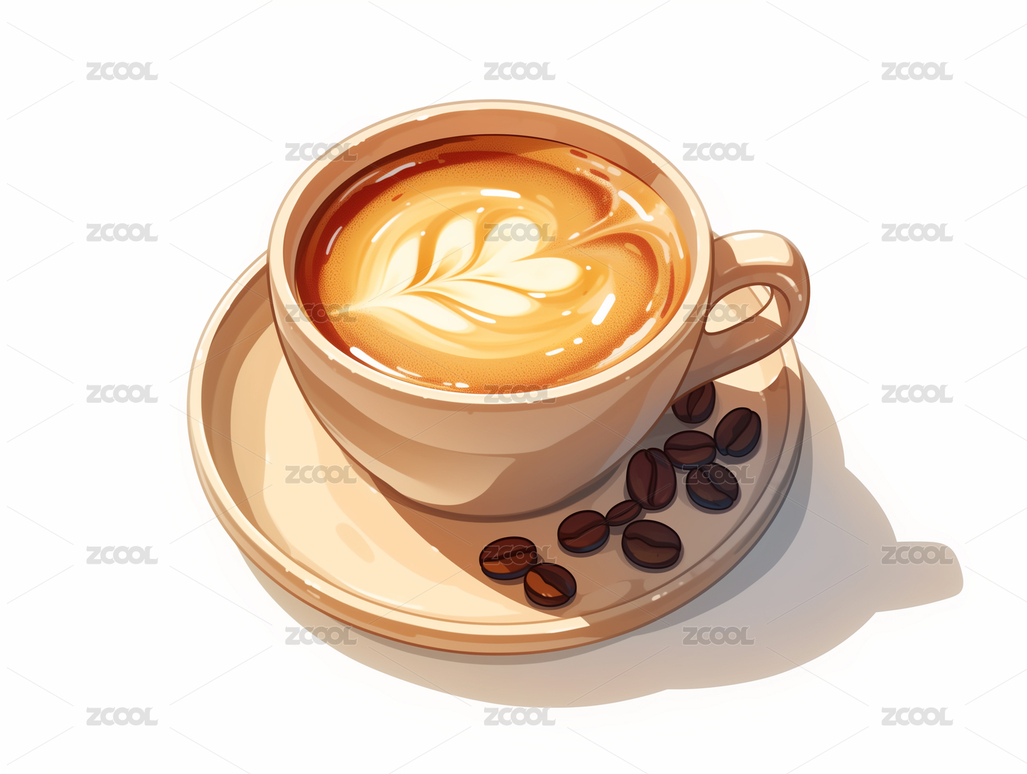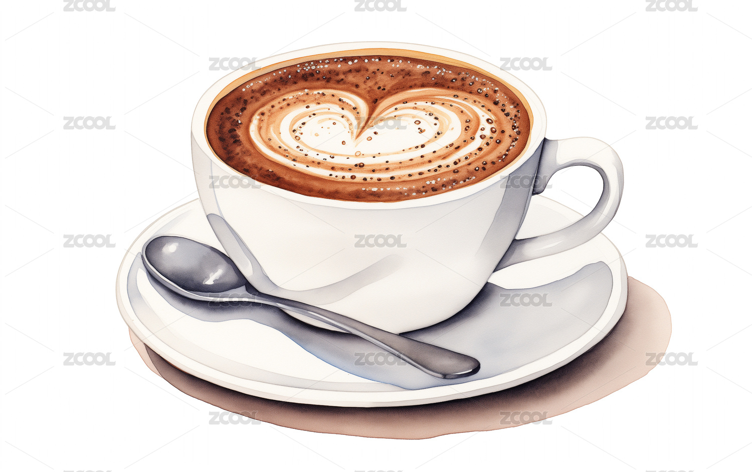 咖啡,一杯咖啡,拿铁咖啡,插画,插图,手绘,水彩画,杯,杯子,咖啡杯