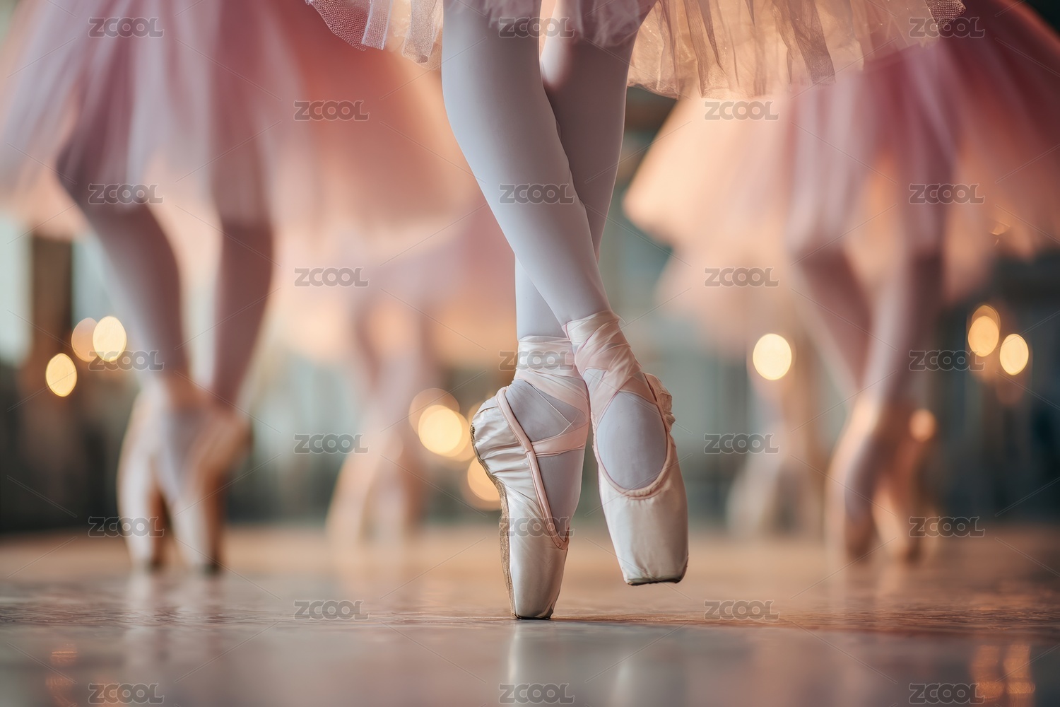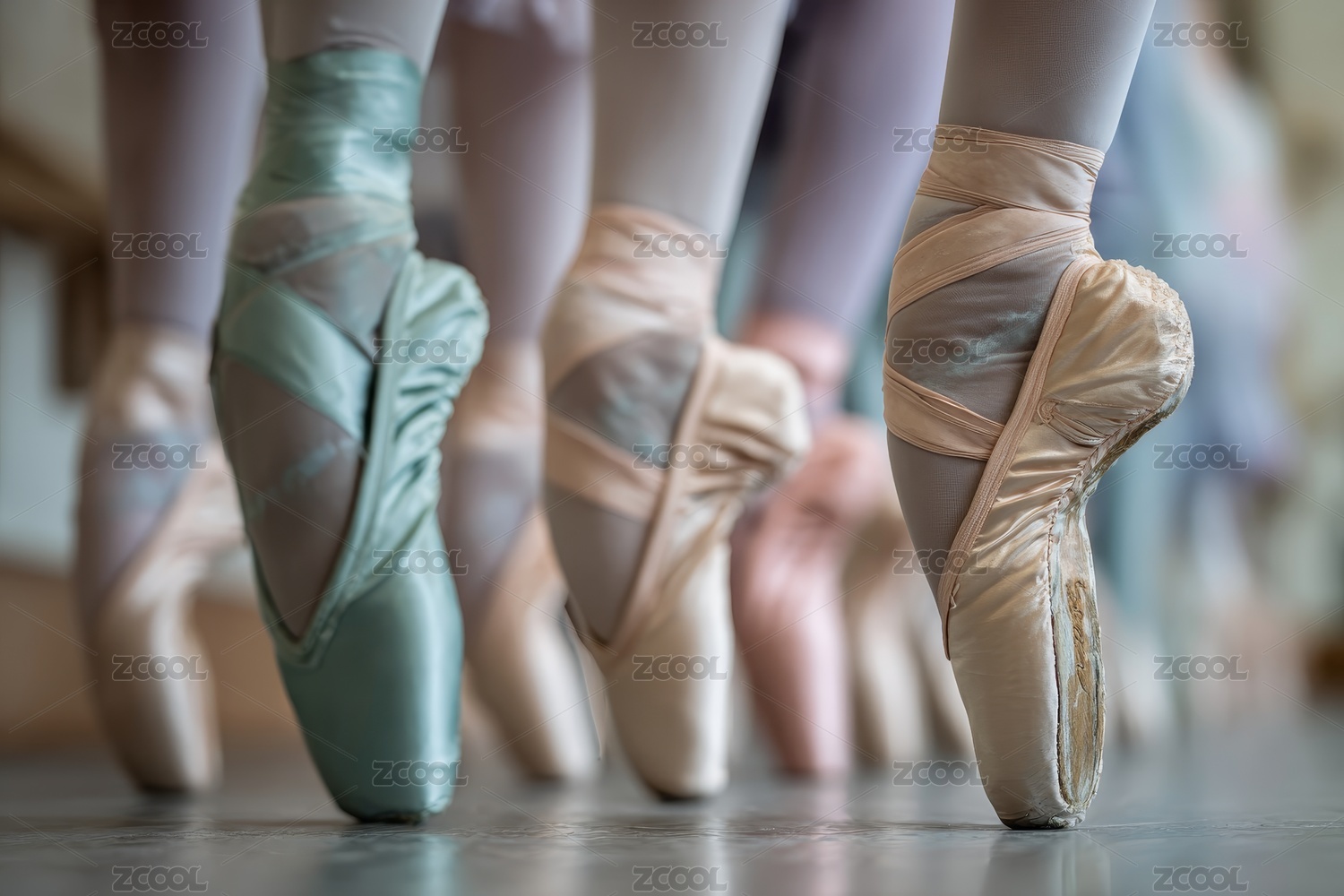 芭蕾舞演员穿着尖头鞋的脚站地板上