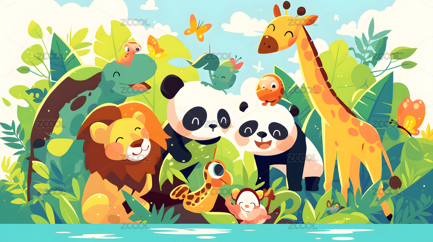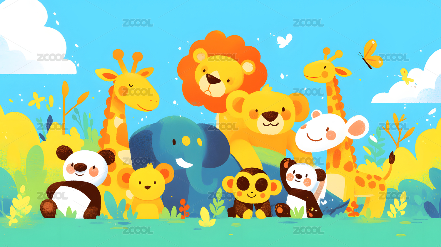 卡通彩色q版动物园