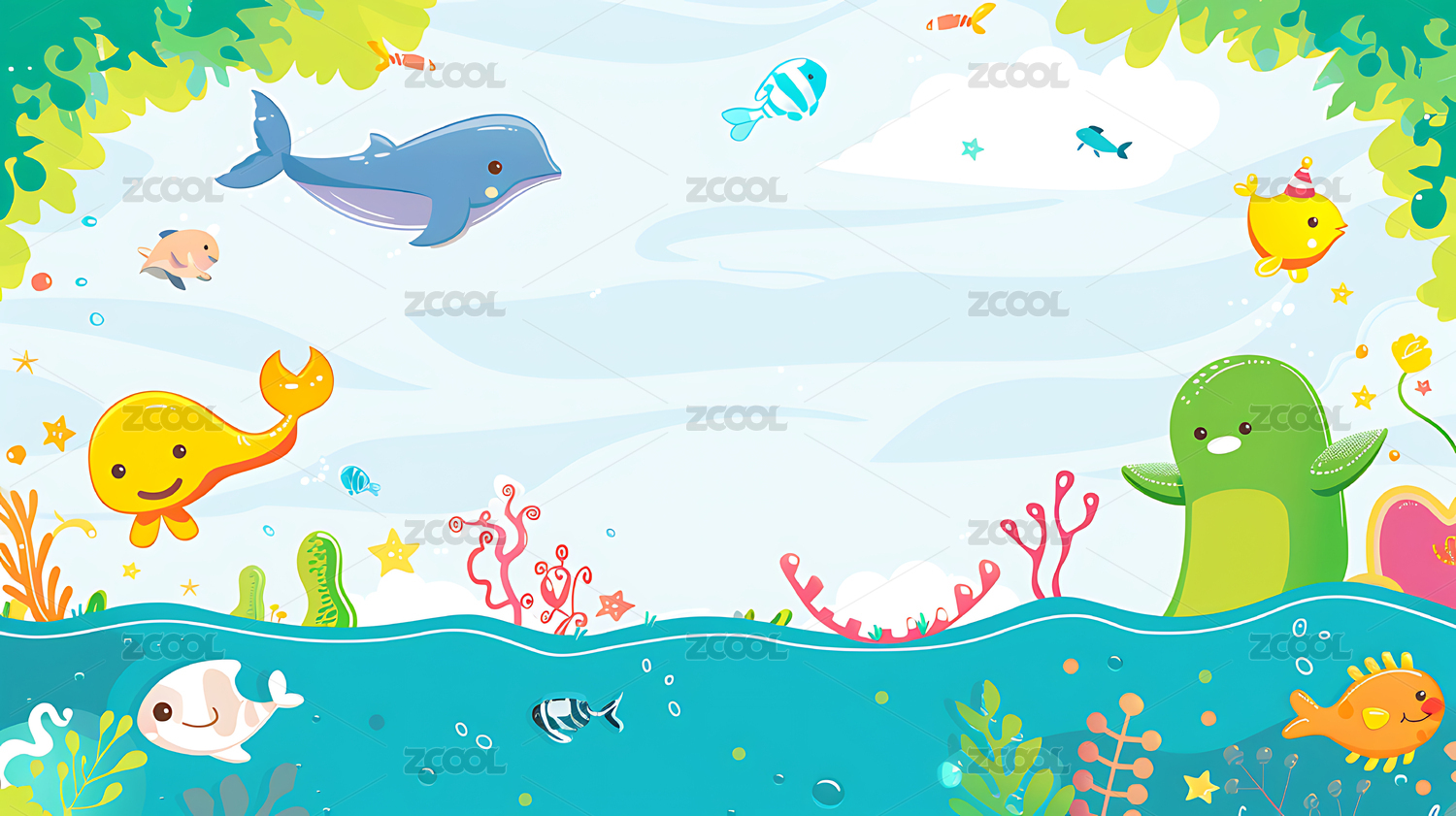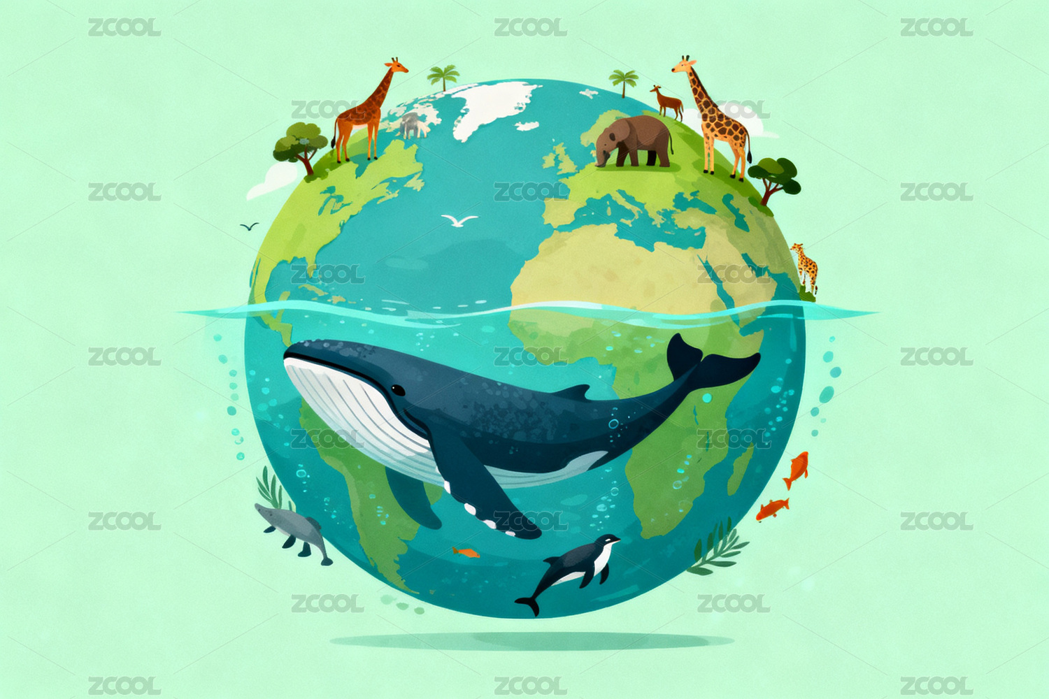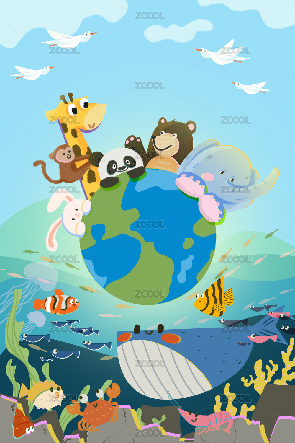 世界地球日海洋动物环保插画