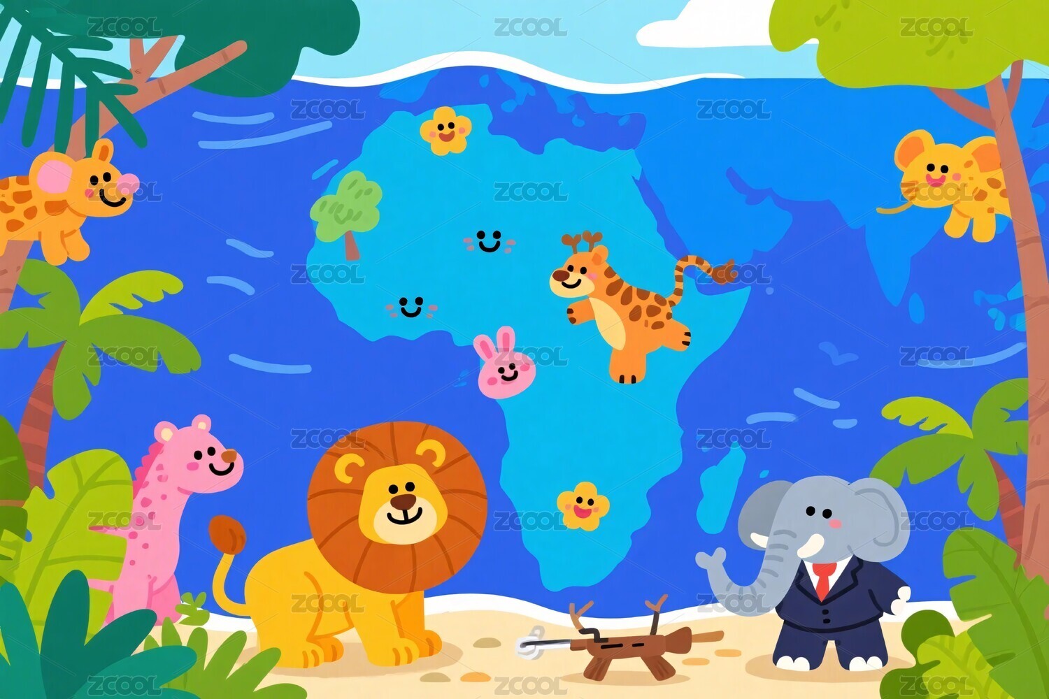 卡通非洲动物插画