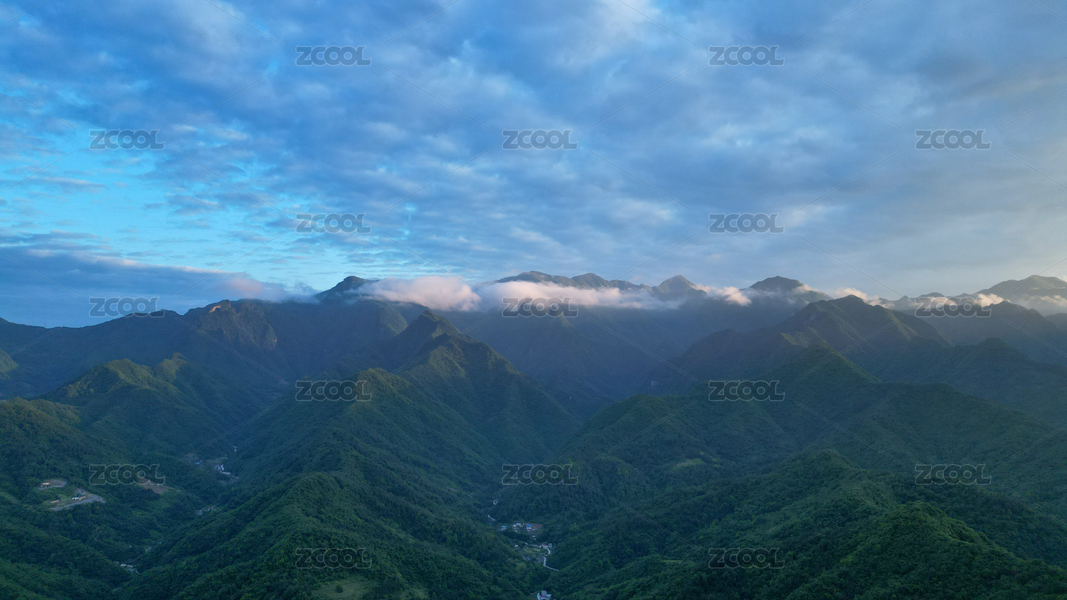 航拍黄昏时分的湖州德清山谷自然风光