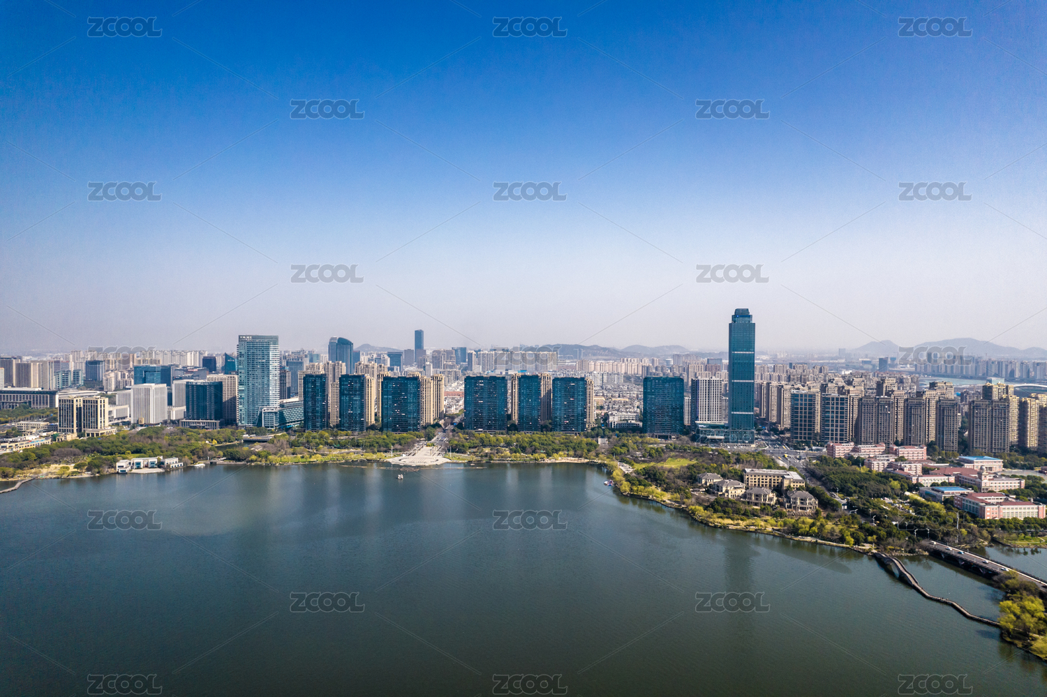 绍兴市柯桥区城市风光航拍,瓜渚湖湖滨公园