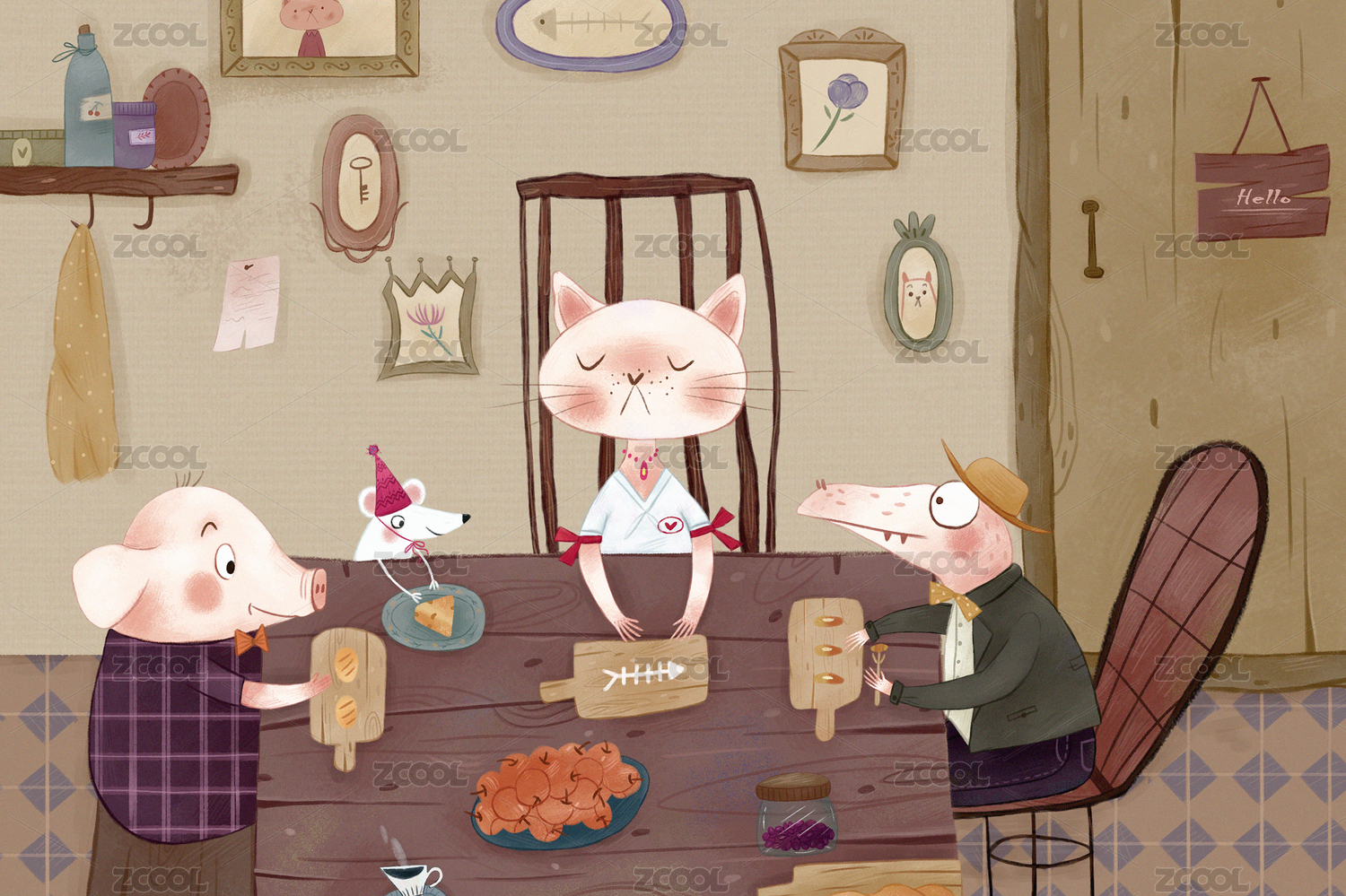 夏至,大暑,小暑,电风扇,处暑,猫,鼠,动物,插画,音乐