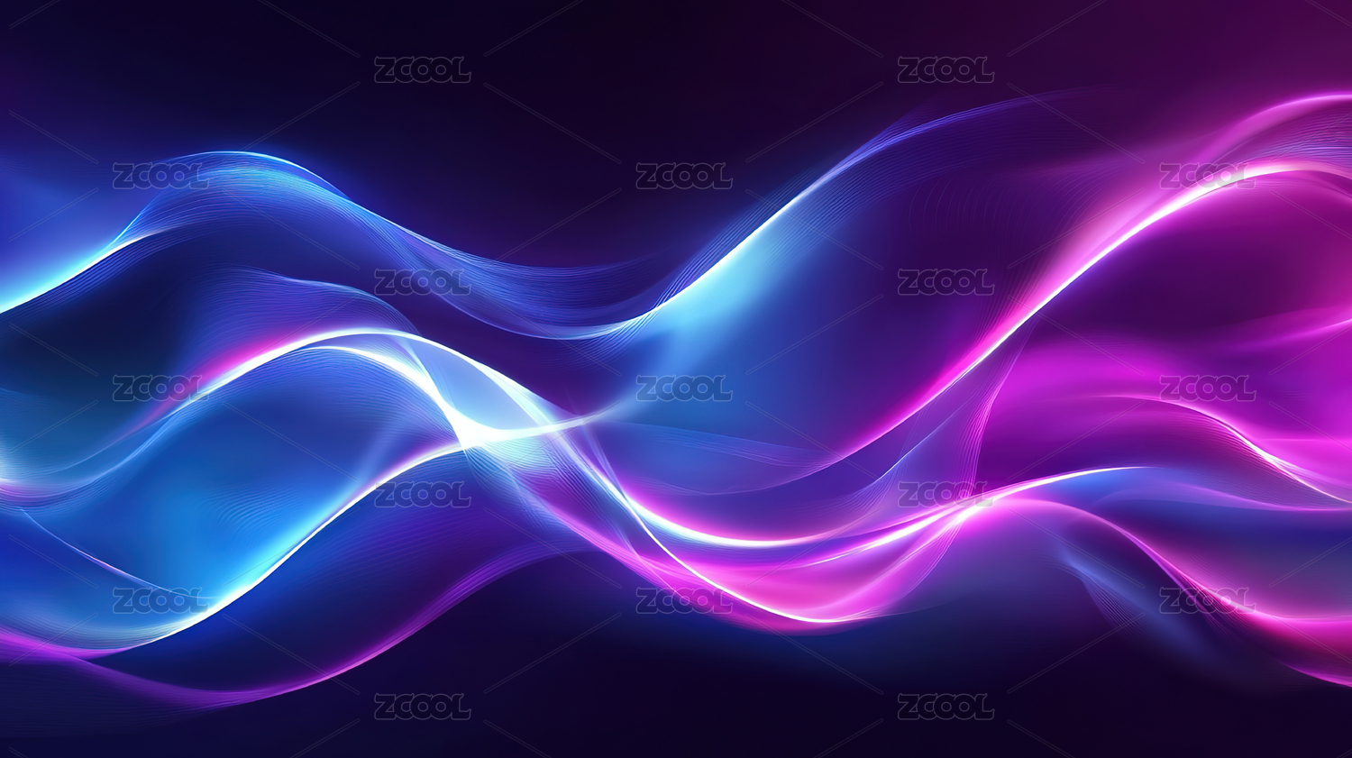 黑色背景下的紫色渐变曲线波浪抽象科技背景