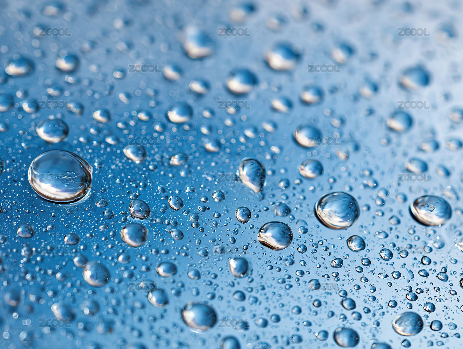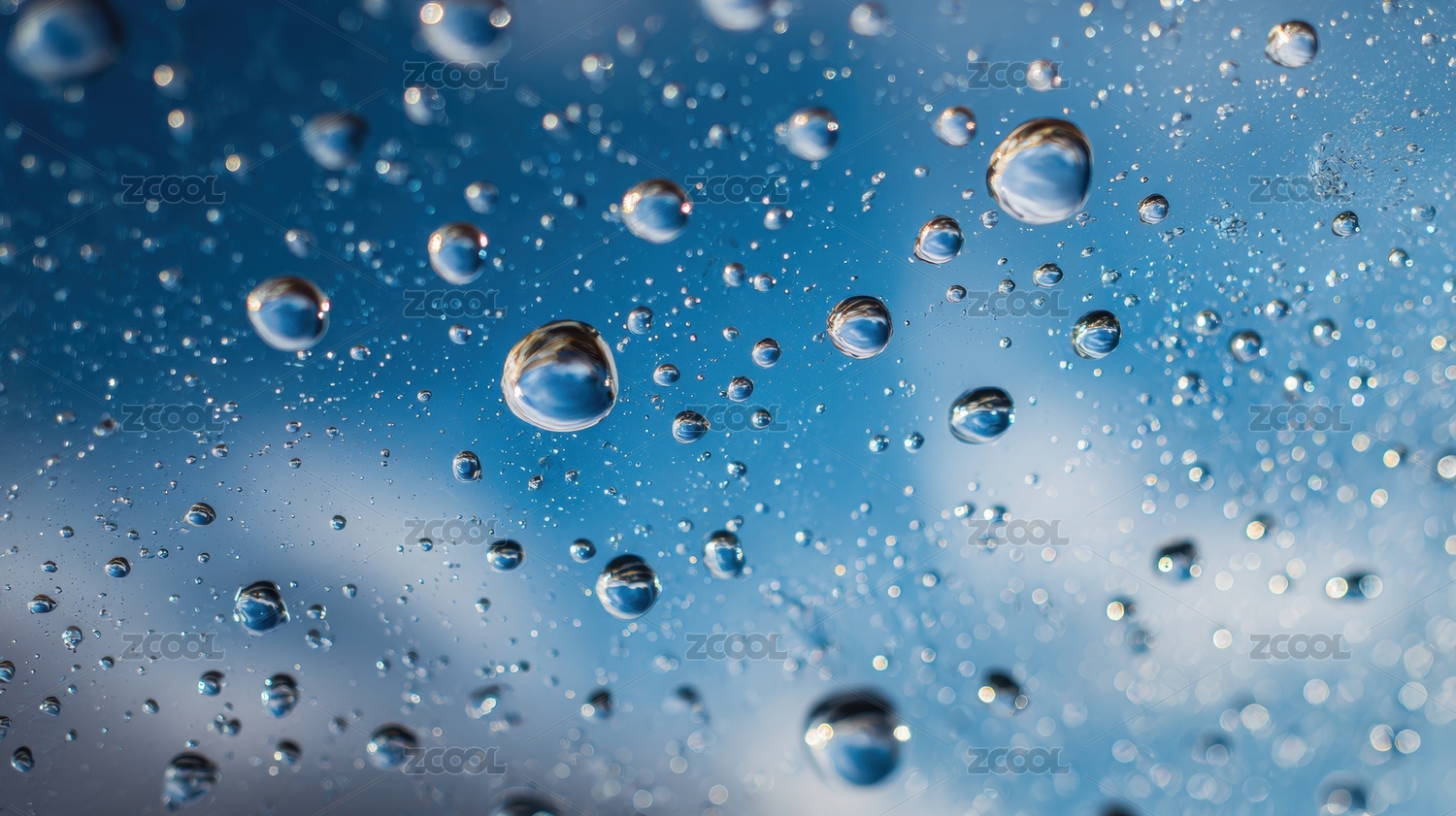 水滴水珠漂浮在纯净蓝色背景保湿护肤壁纸