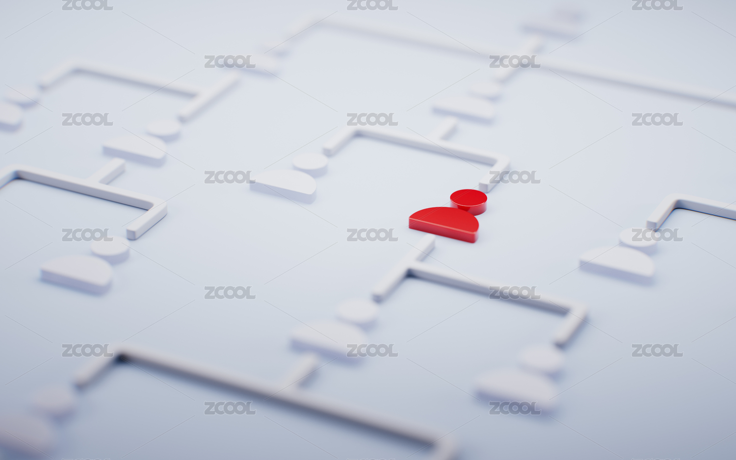 微缩创意正在粉刷红心的男人和一对路过情侣