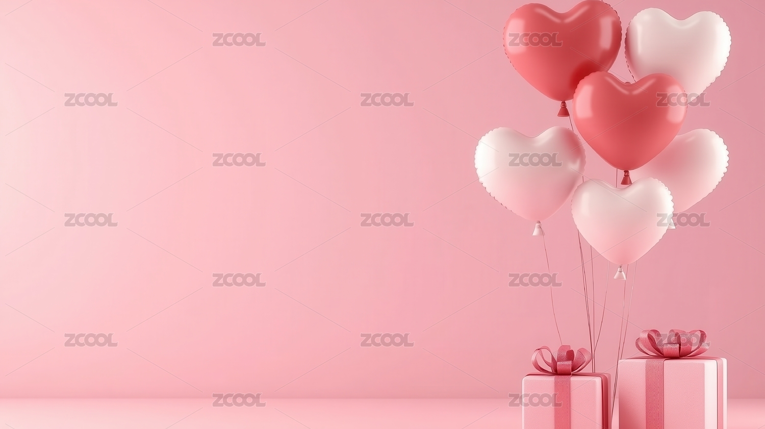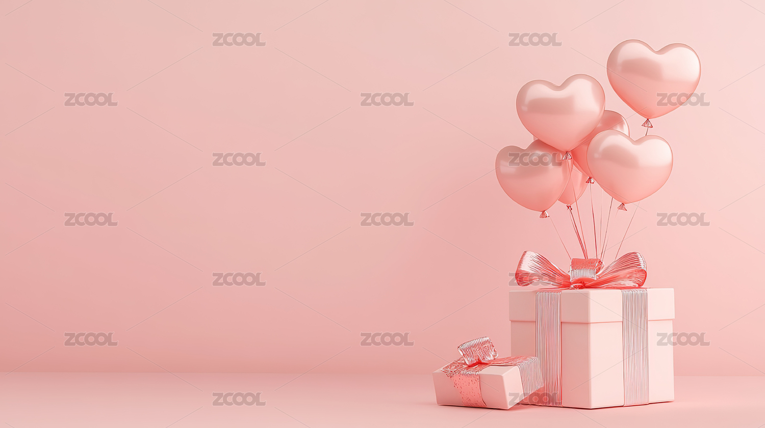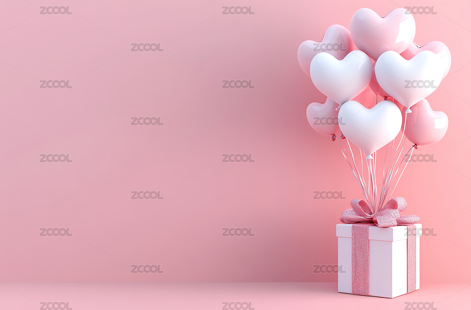 圣诞节爱心形状气球挂着粉色礼盒插画