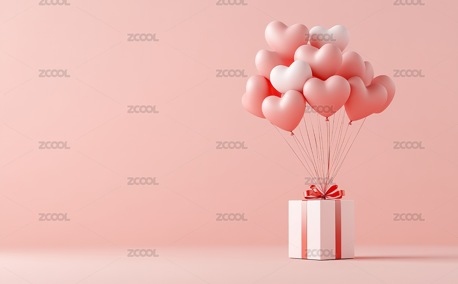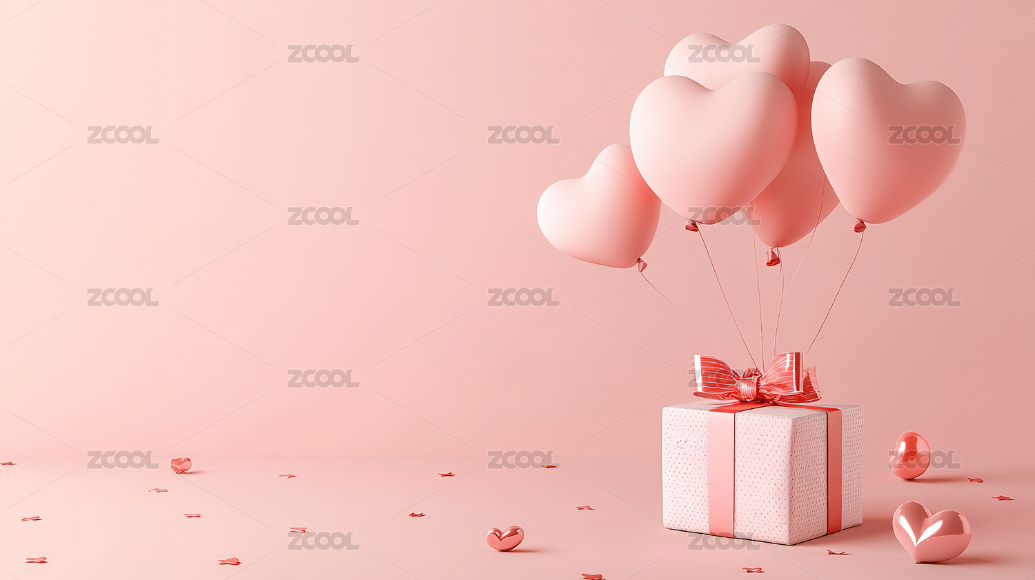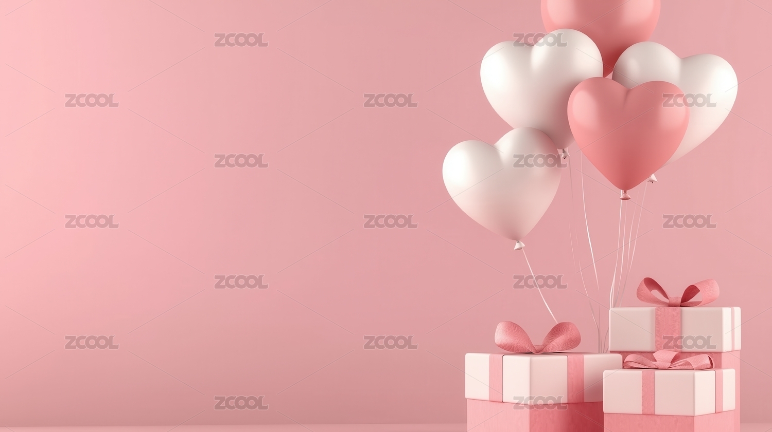 圣诞节爱心形状气球挂着粉色礼盒插画