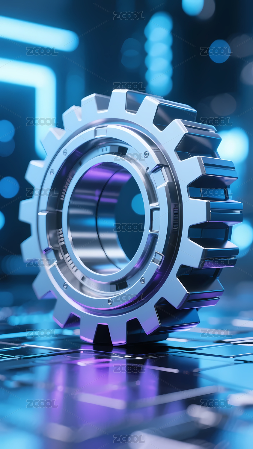 现代工业机械齿轮精密运转,活力蓝黄风格
