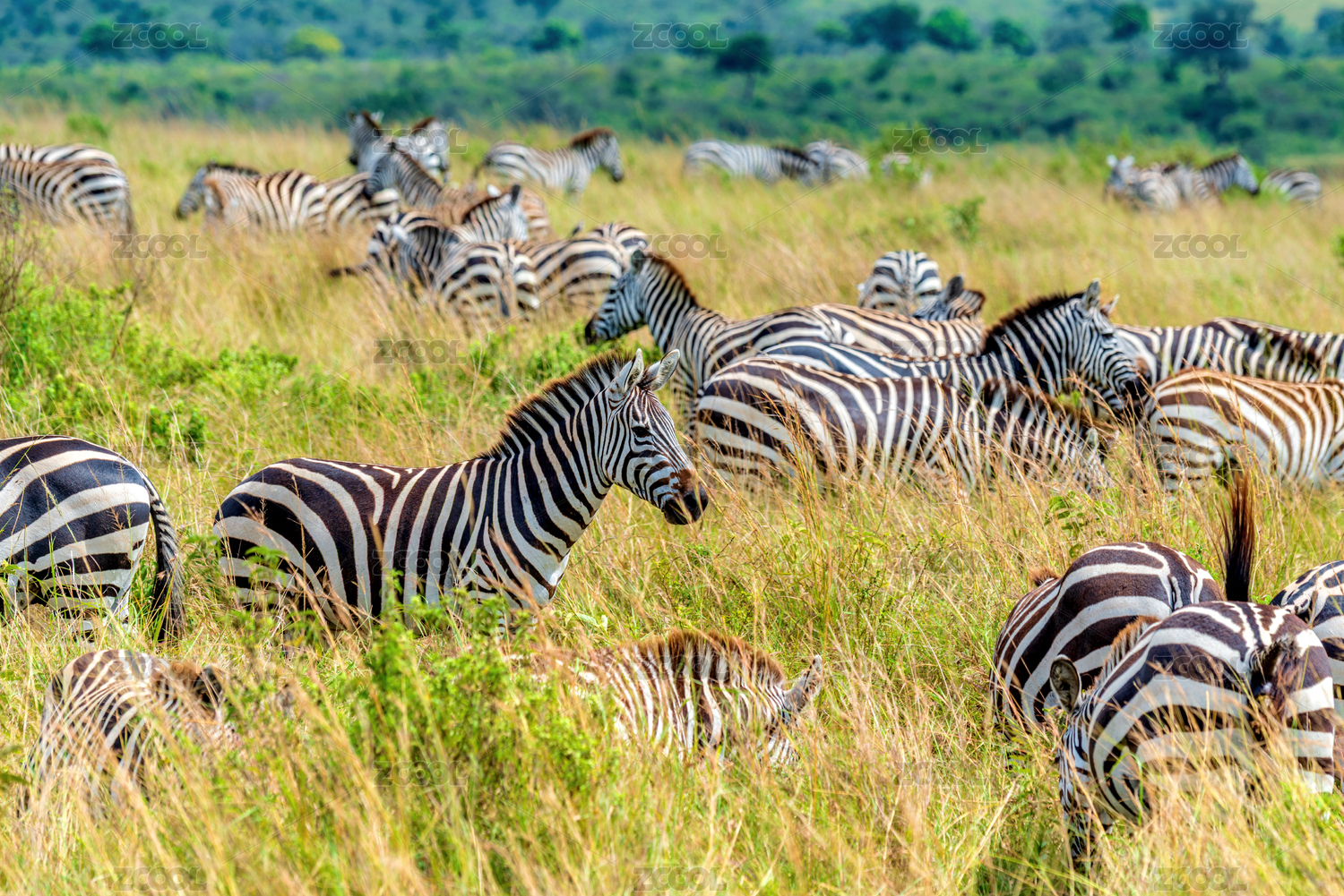 非洲大草原-塞伦盖蒂国家公园内的斑马群