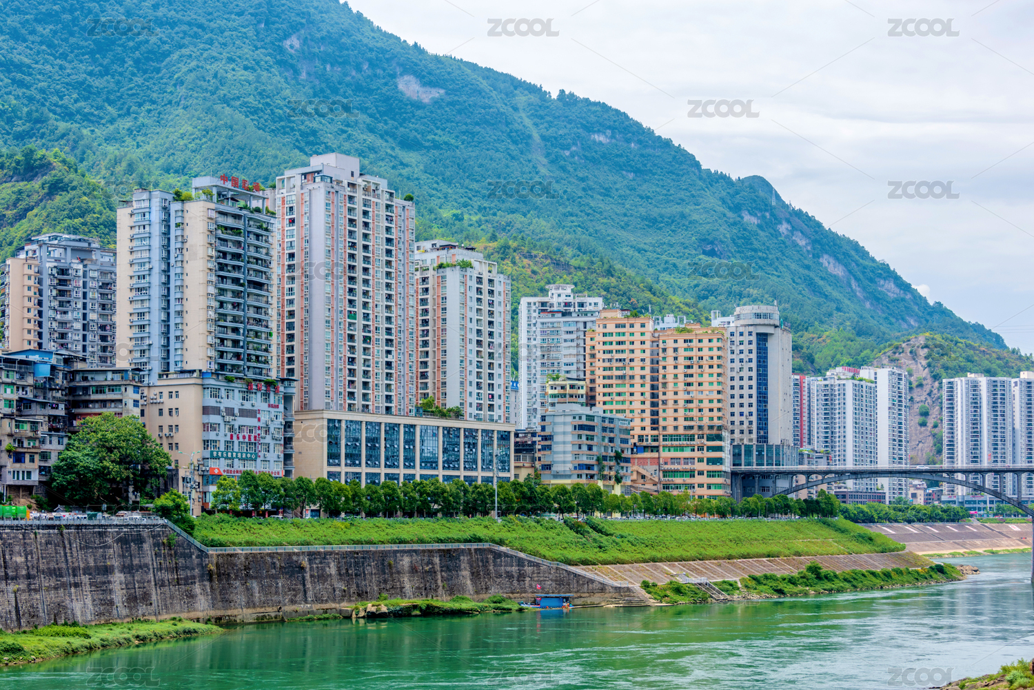 中国四川省达州市三里古街州河外滩高楼建筑