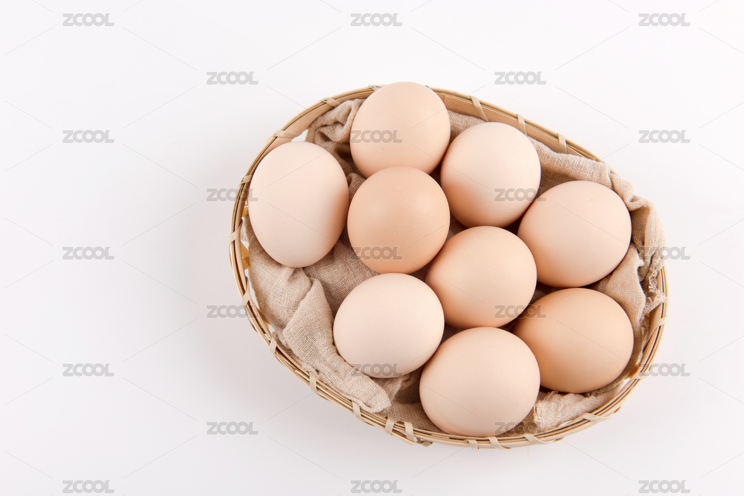 白色背景上一小筐鸡蛋 带壳的鸡蛋