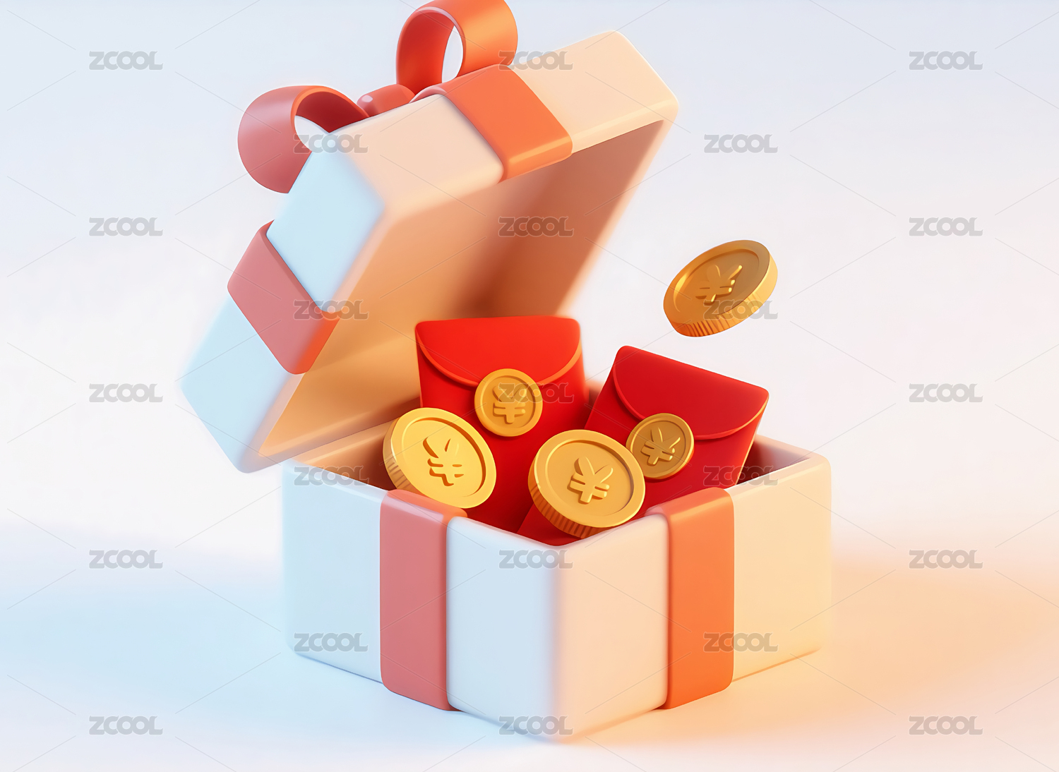 卡通礼盒促销抽奖互联网金融收益理财插画