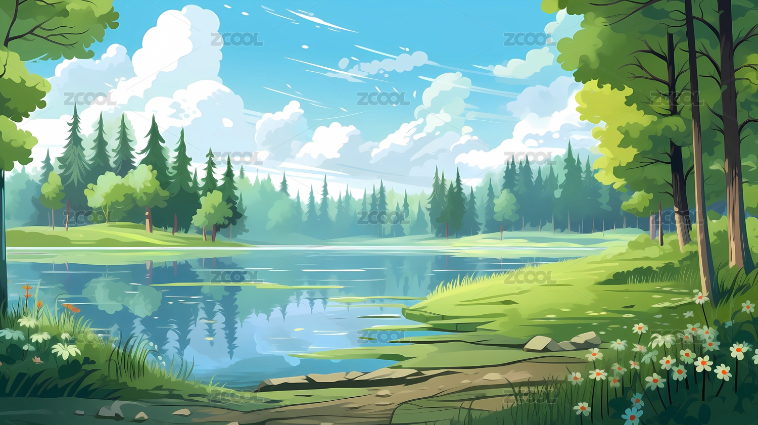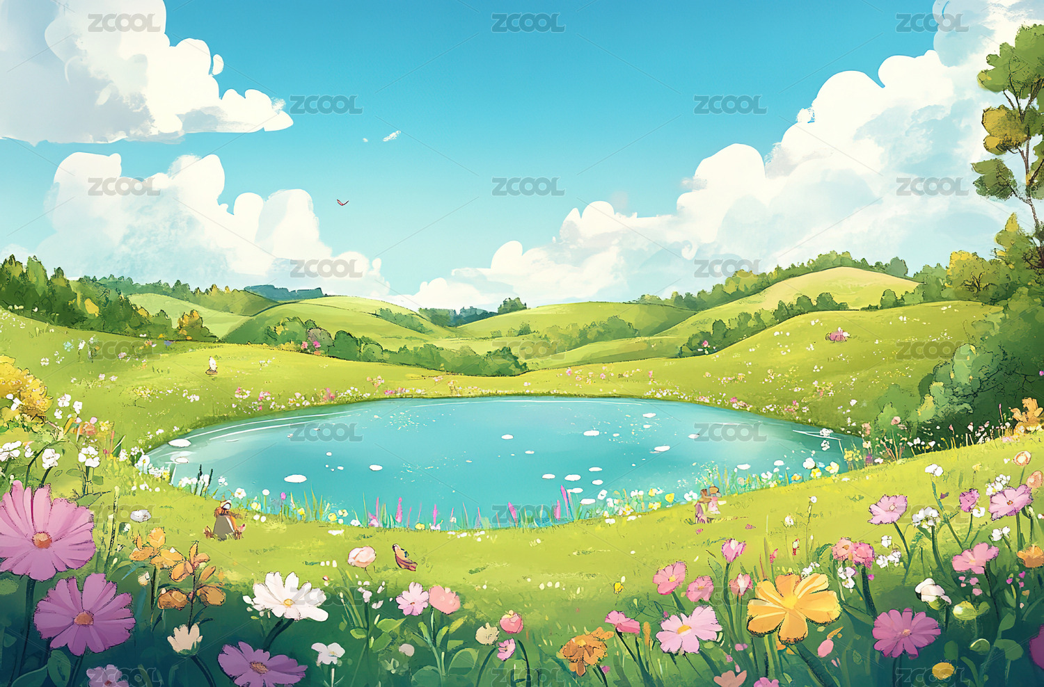 复古日漫风景湿地湖边户外旅游夏季旅行
