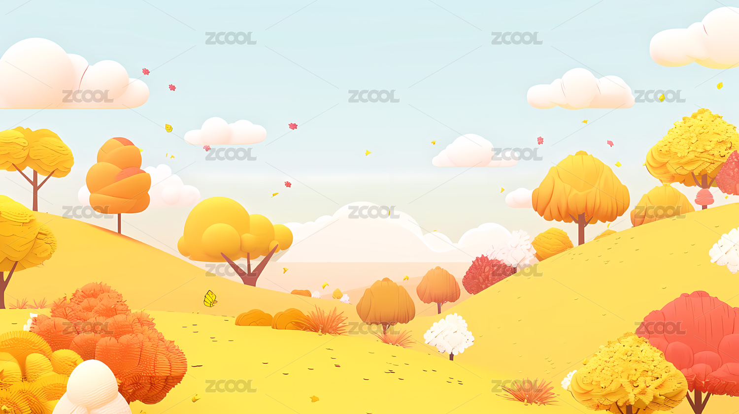 三维,卡通,秋天,树林,树叶,背景,壁纸,插画,秋季,阳光