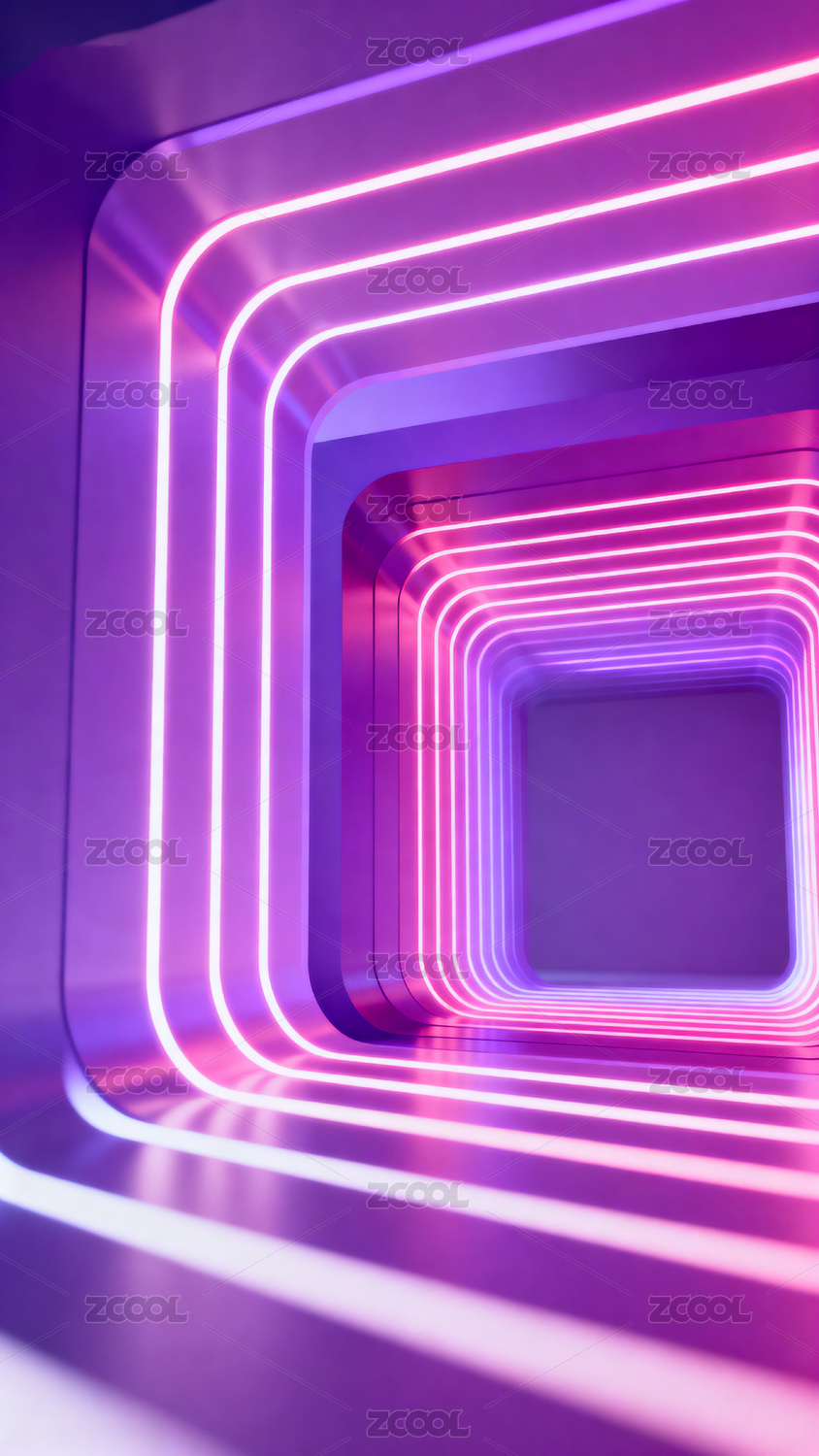 红蓝色霓虹灯环绕构成的发光通道隧道
