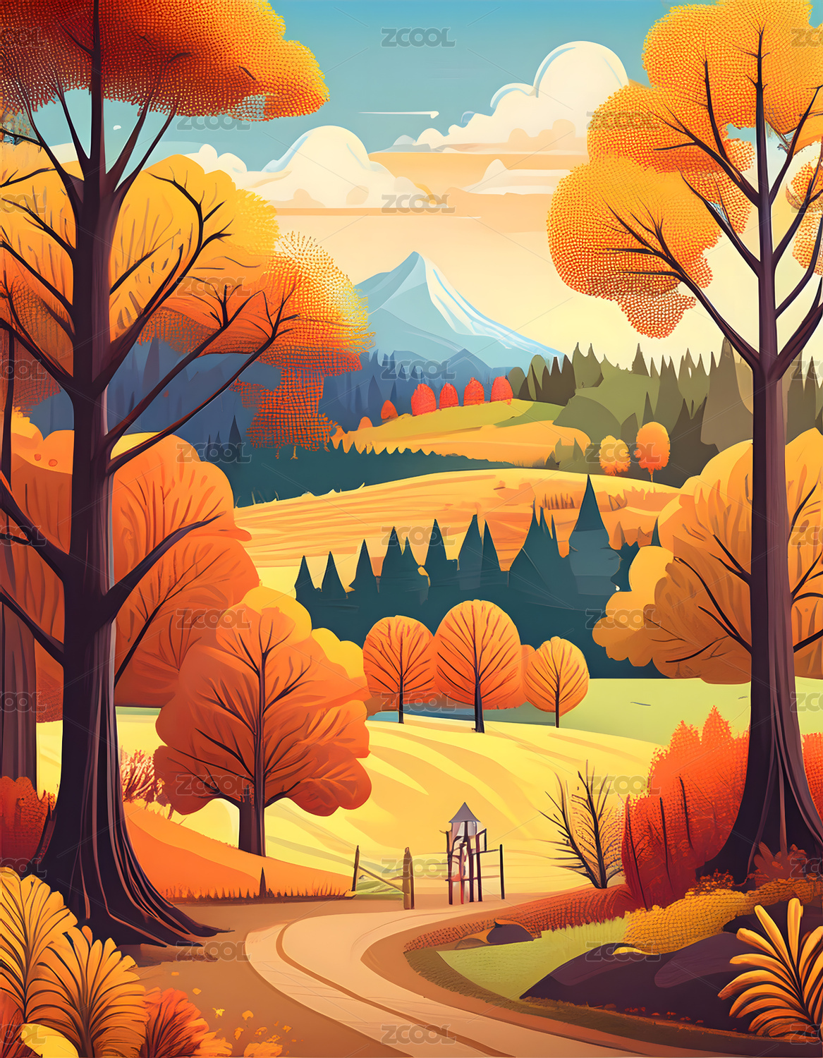 背景,缤纷,场景,橙色,道路,风景,公园,光线,红色,环境