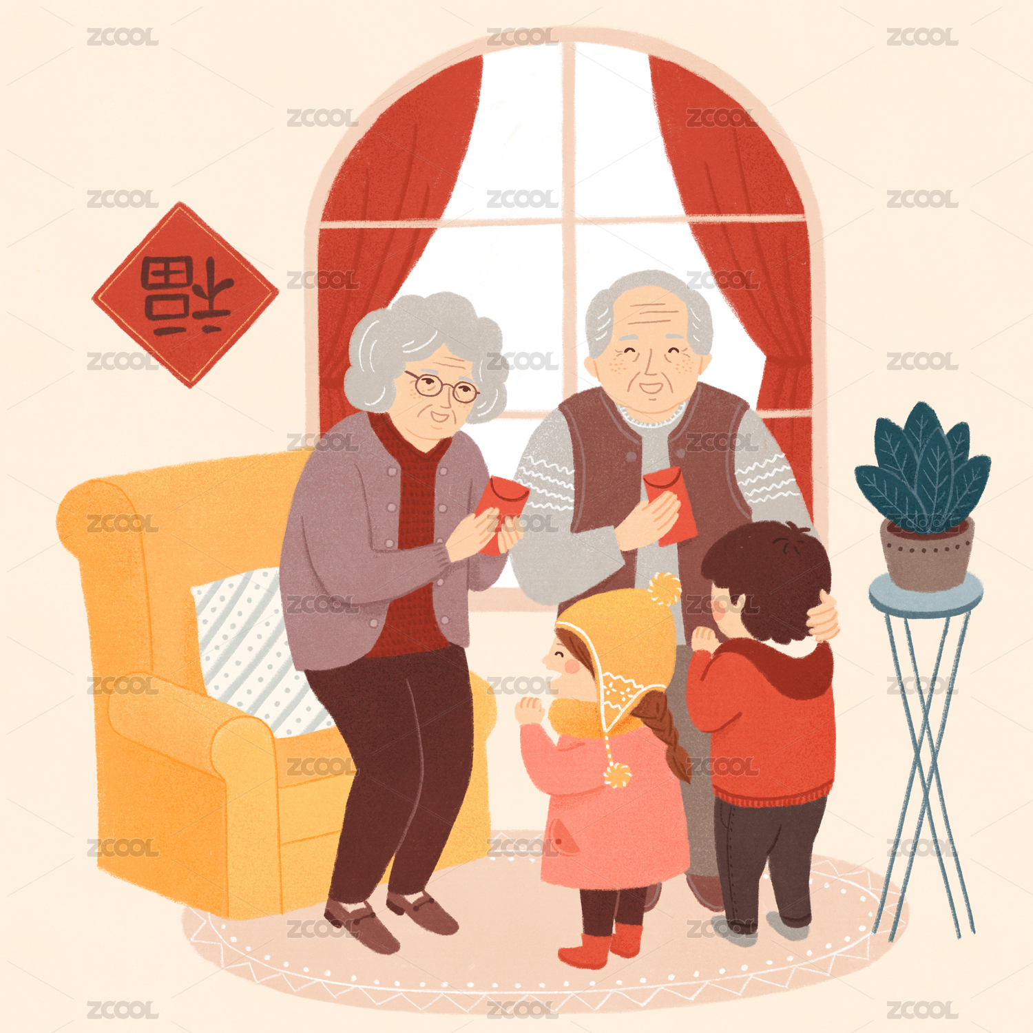 团聚,HEZODIAC2021,合家欢,家乡,回家,幸福,春节,插画,扁平风,过年