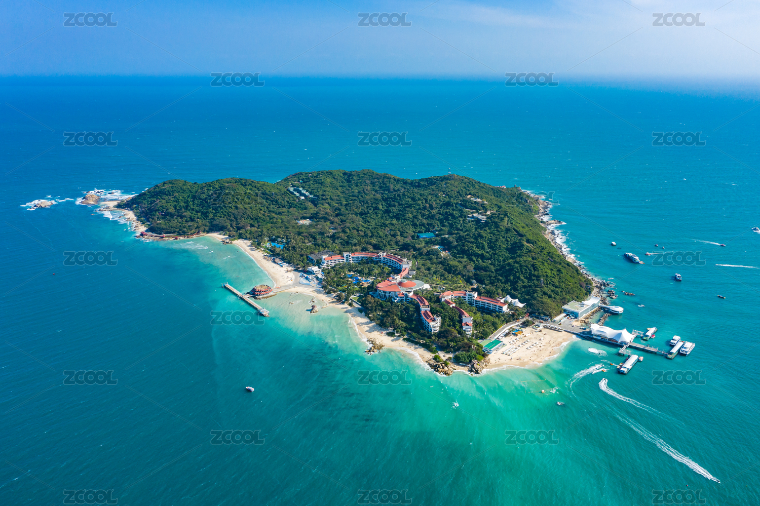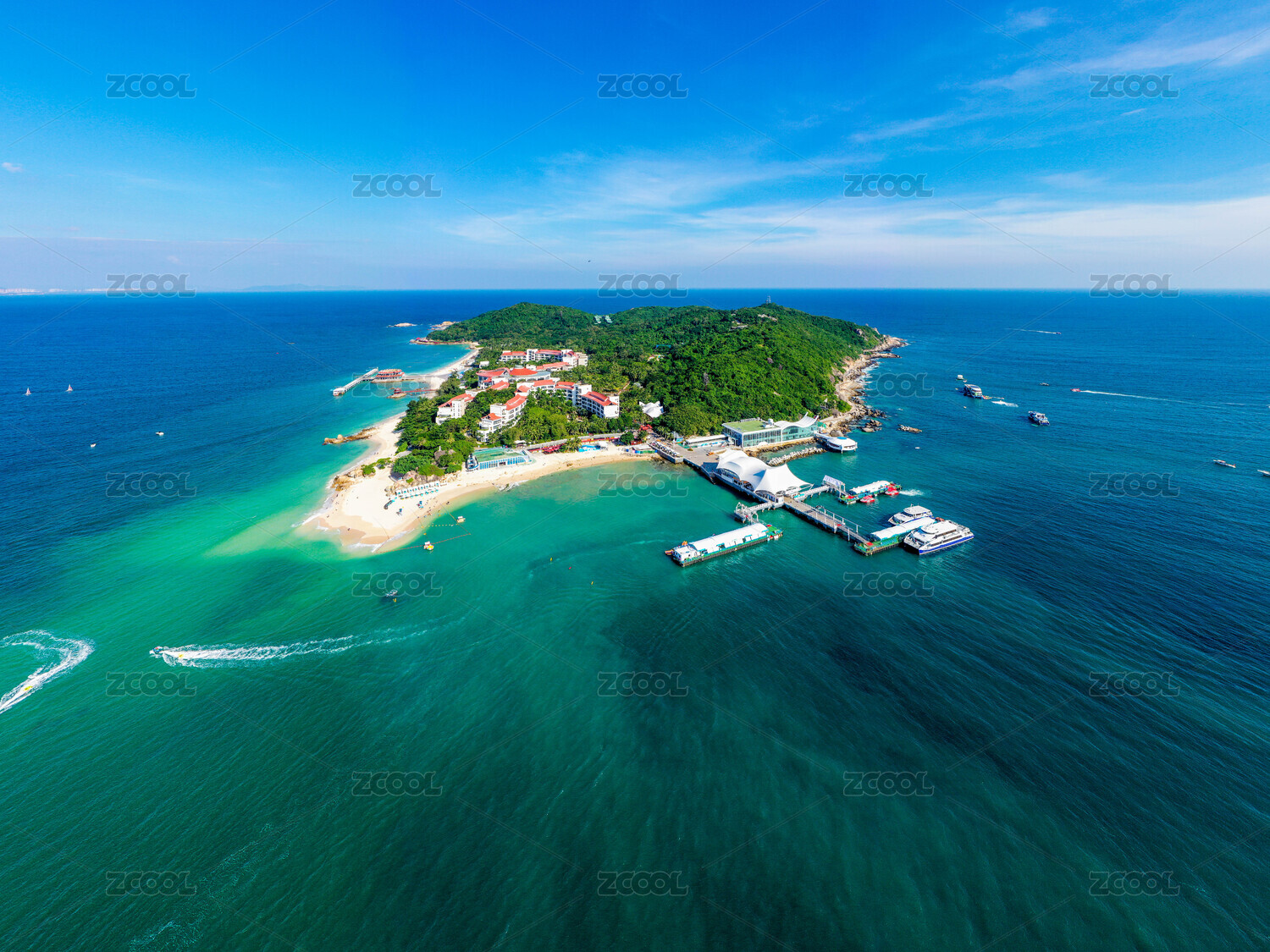 航拍海南陵水分界洲岛热带海滨蓝色大海岛屿