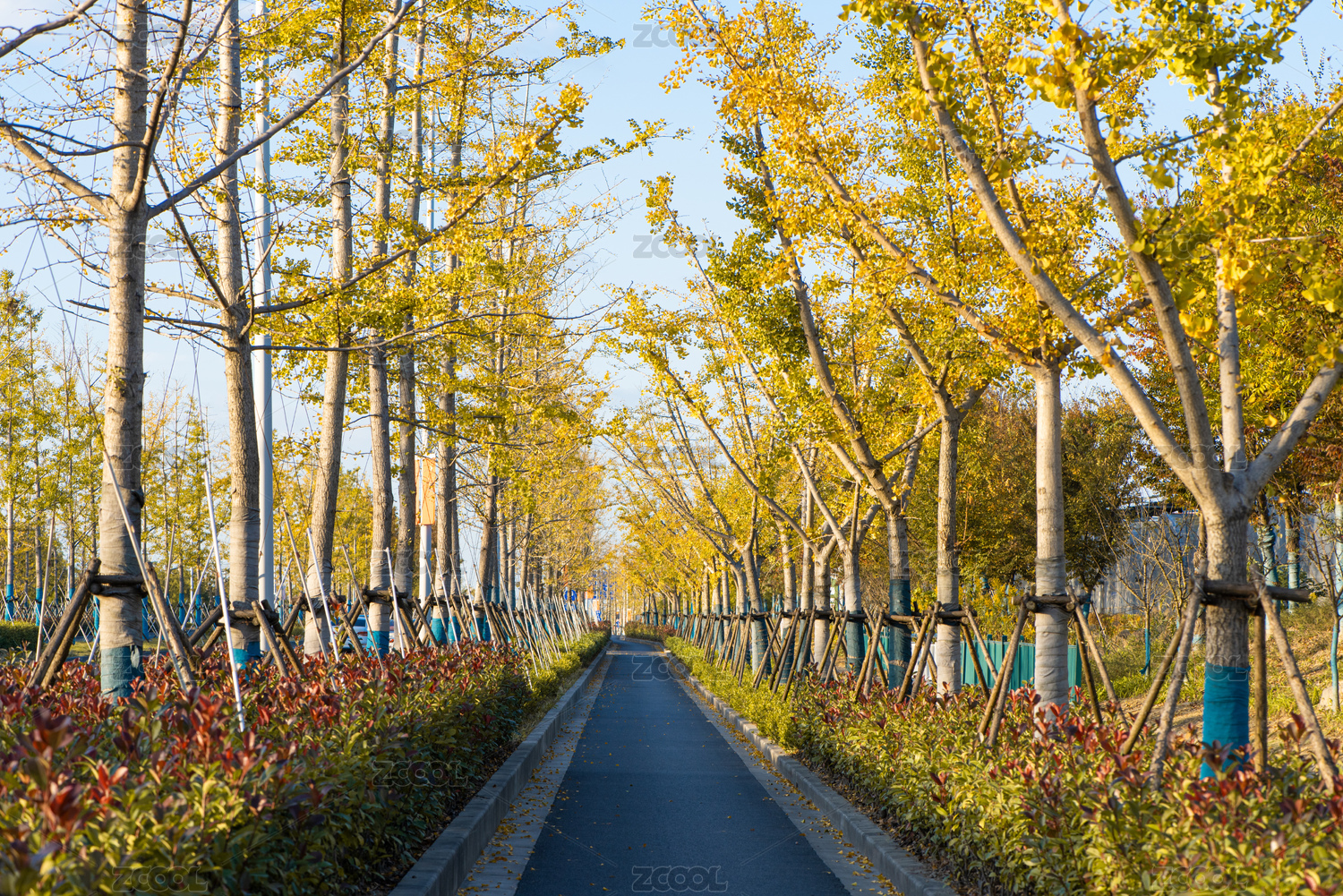 夕阳下中国安徽宿州三角洲生态公园的步行道