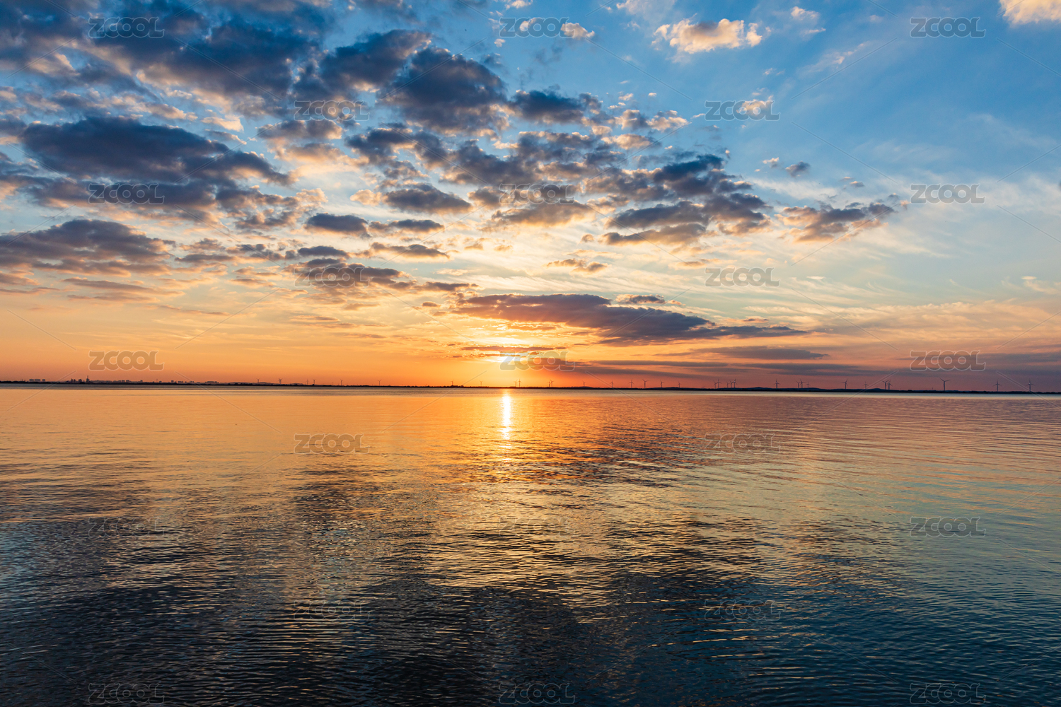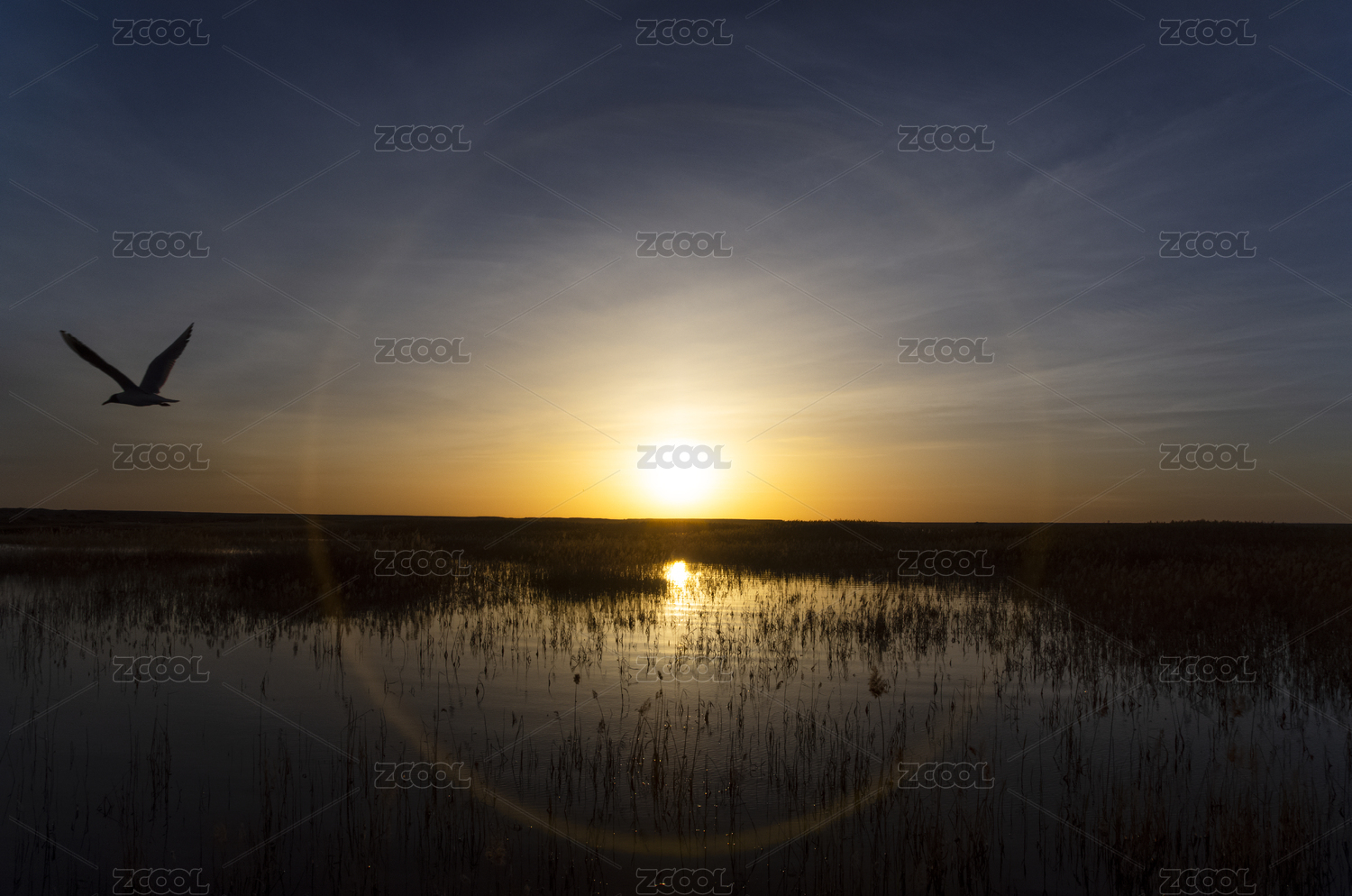 中国辽宁省盘锦市红海滩傍晚落日晚霞自然风光