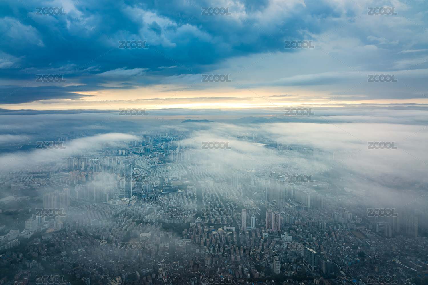现代,城市生活,无人,云景,仙境,云雾缭绕,清晨,中心,阳光,平流雾