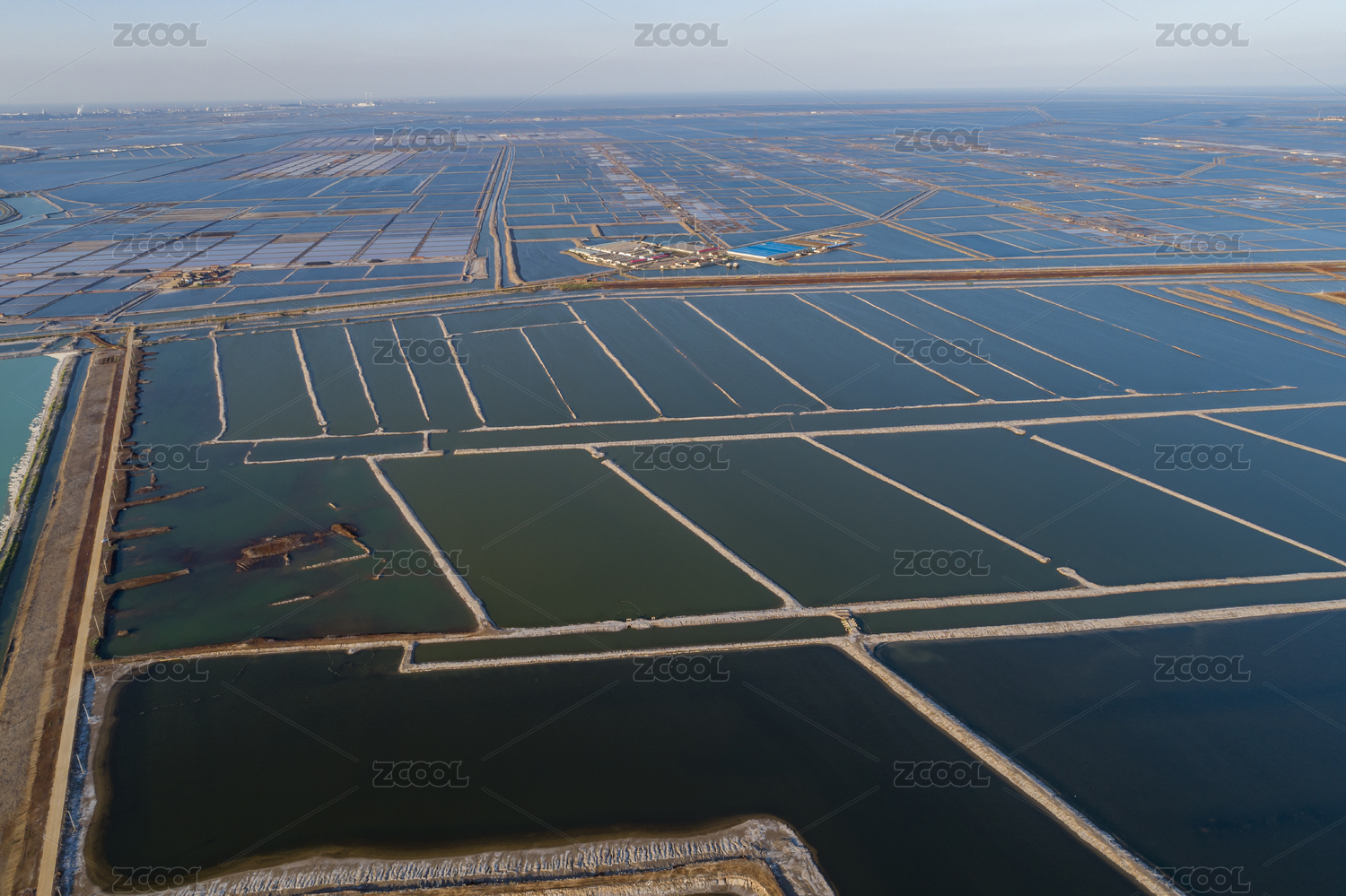 天津滨海新区塘沽盐场的中央大道航拍海景图