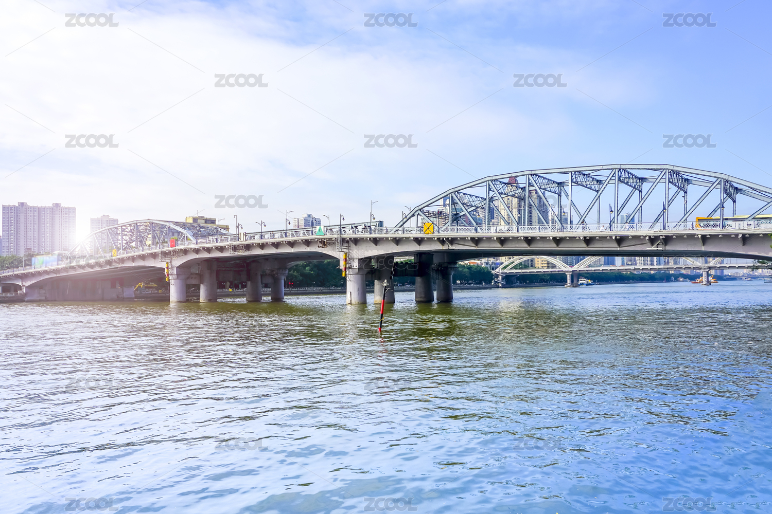 广州珠江解放大桥与城市高楼现代建筑