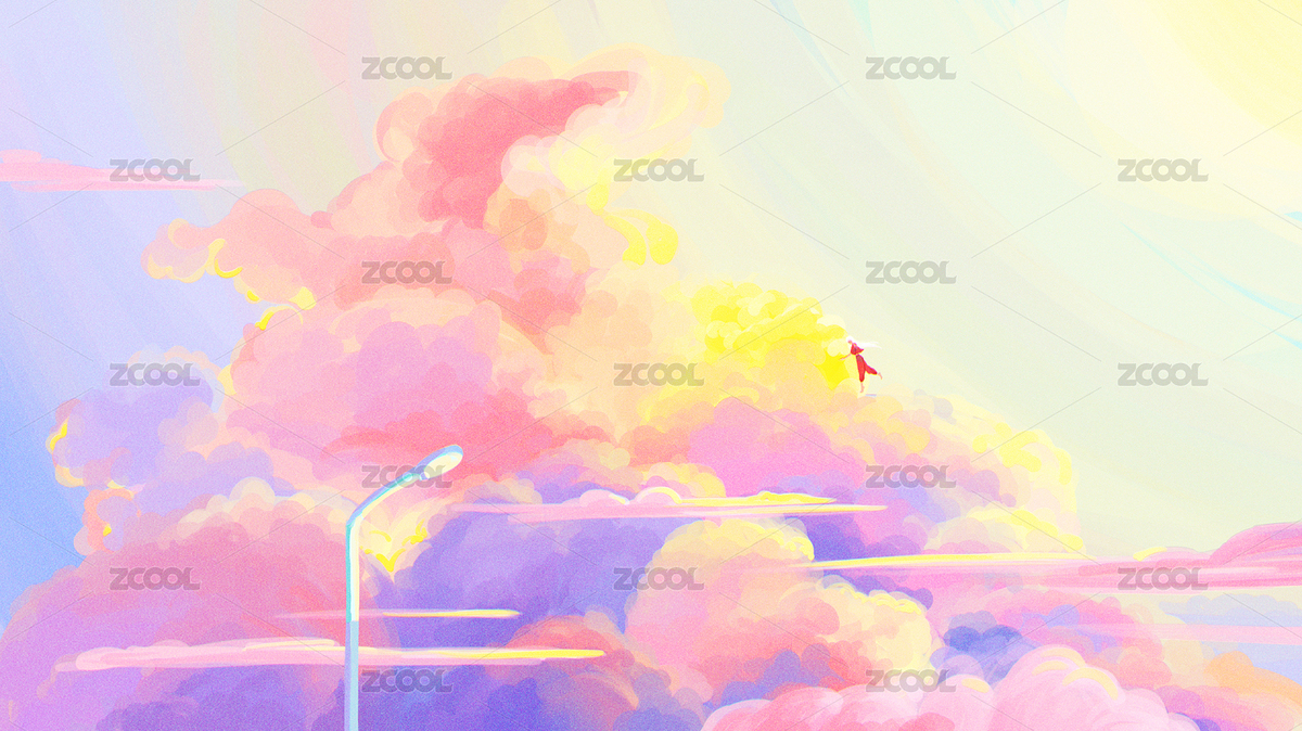 彩色云朵天空唯美插画