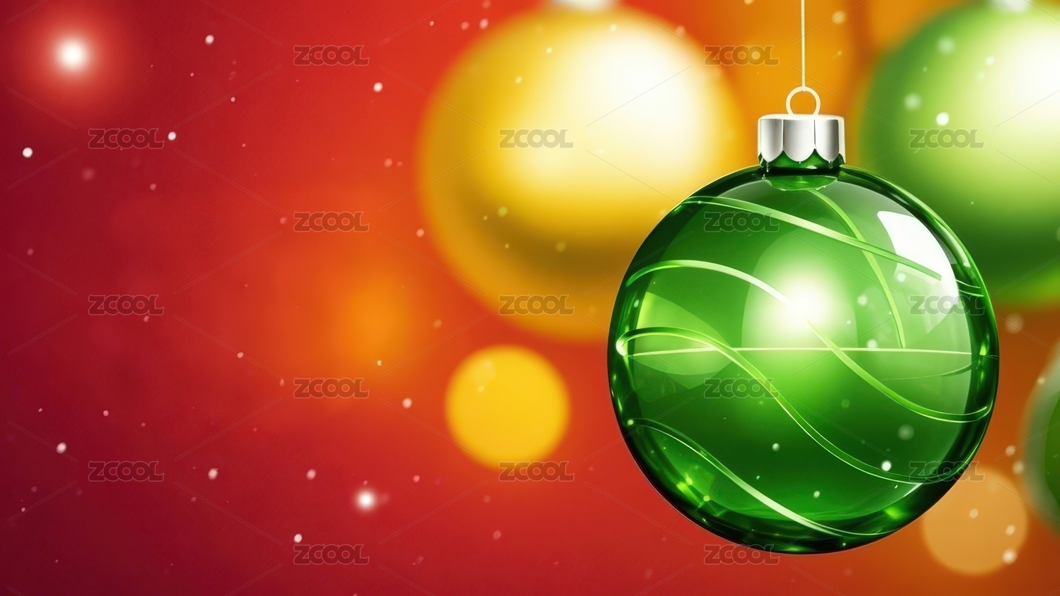 圣诞节绿球与金黄背景