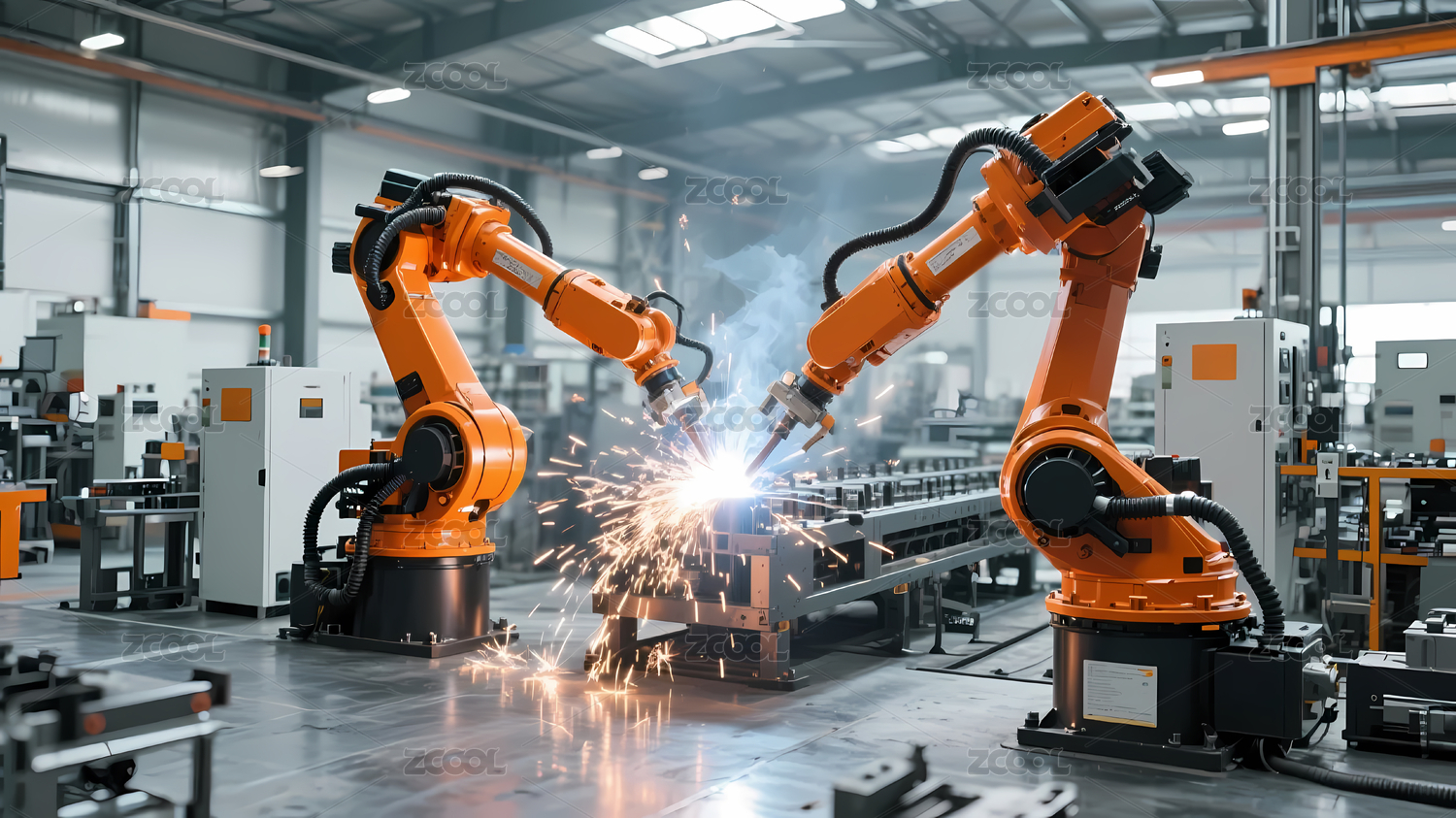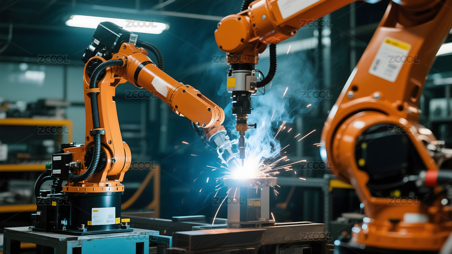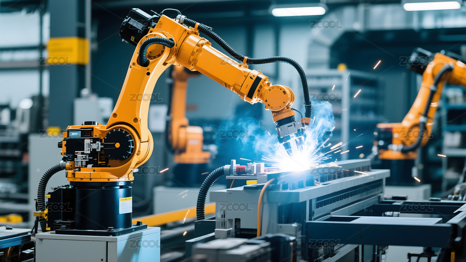 现代化工业车间的机械臂焊接作业