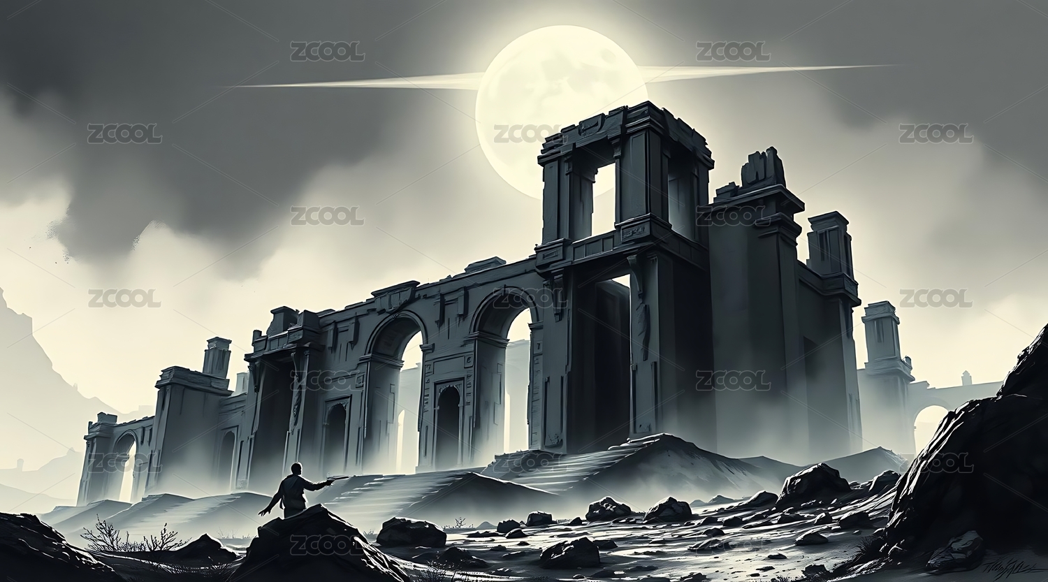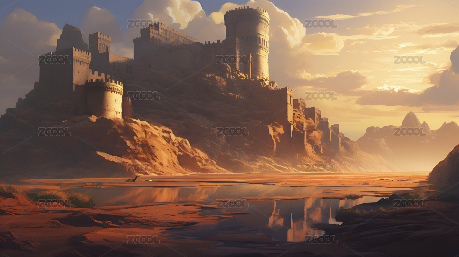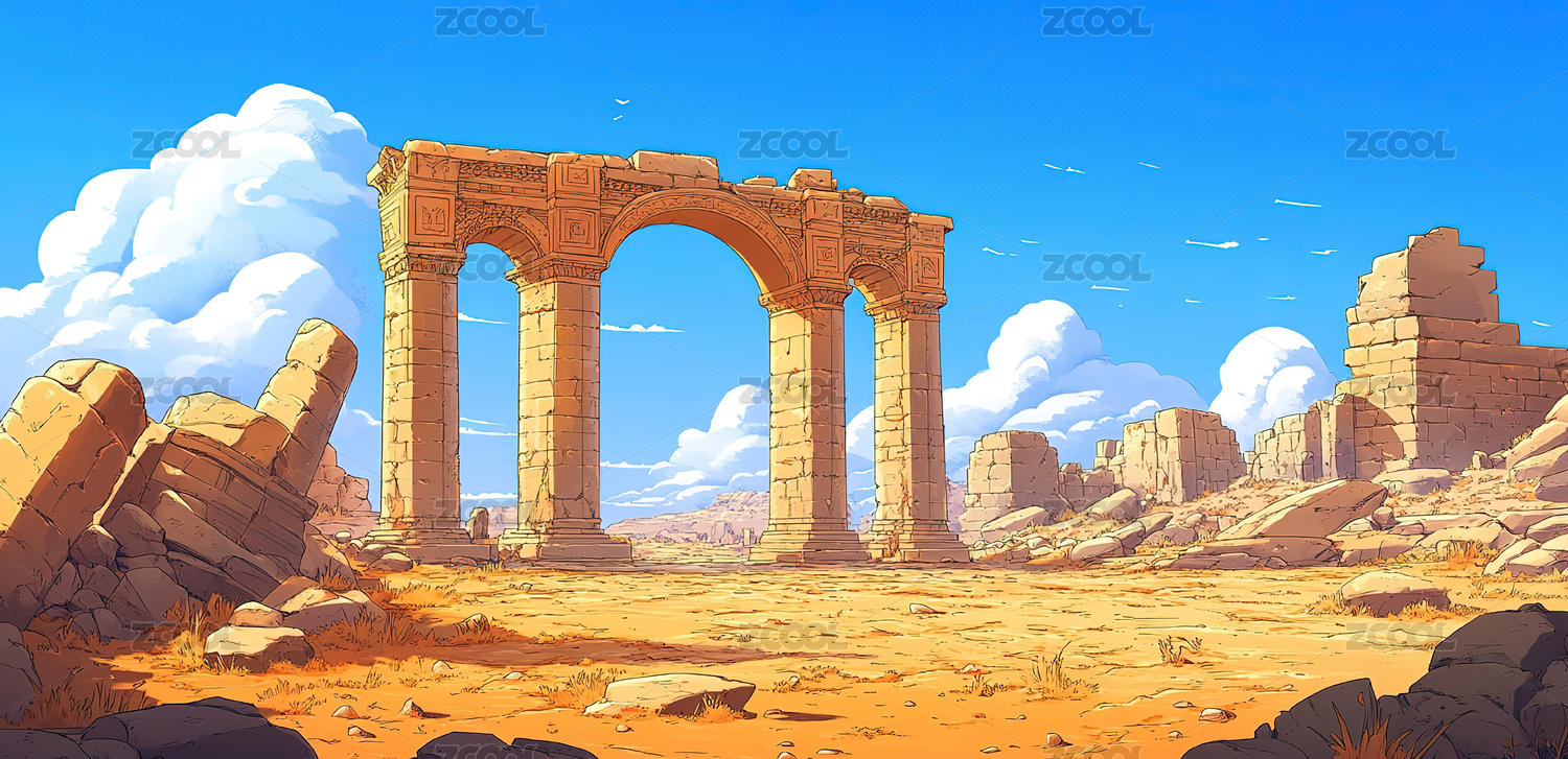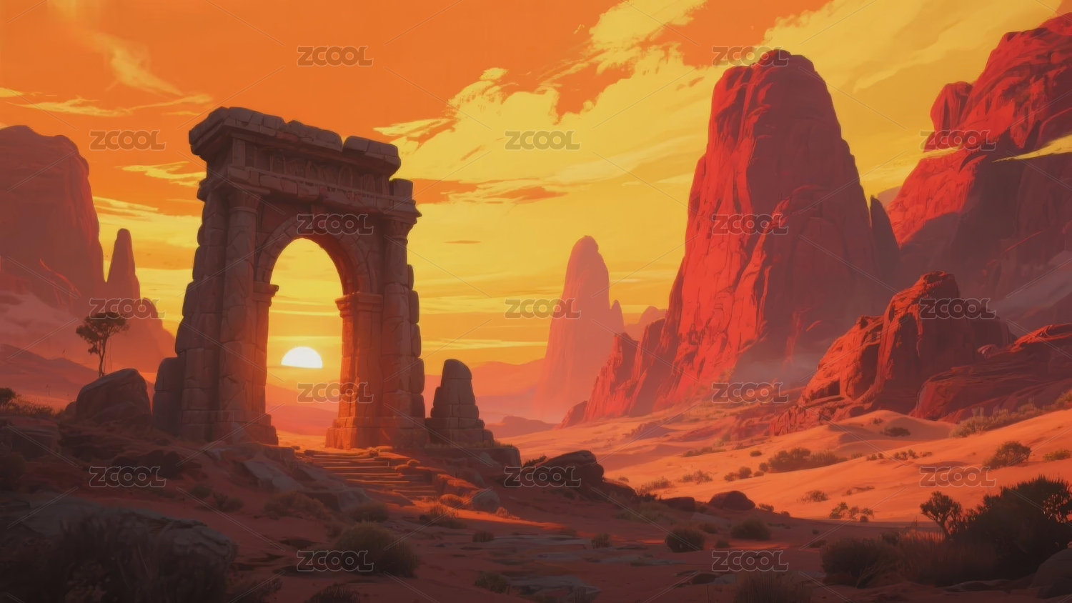 阳光,风景,天空,橙色,艺术,插画,梦幻,云彩,夕阳,拱门