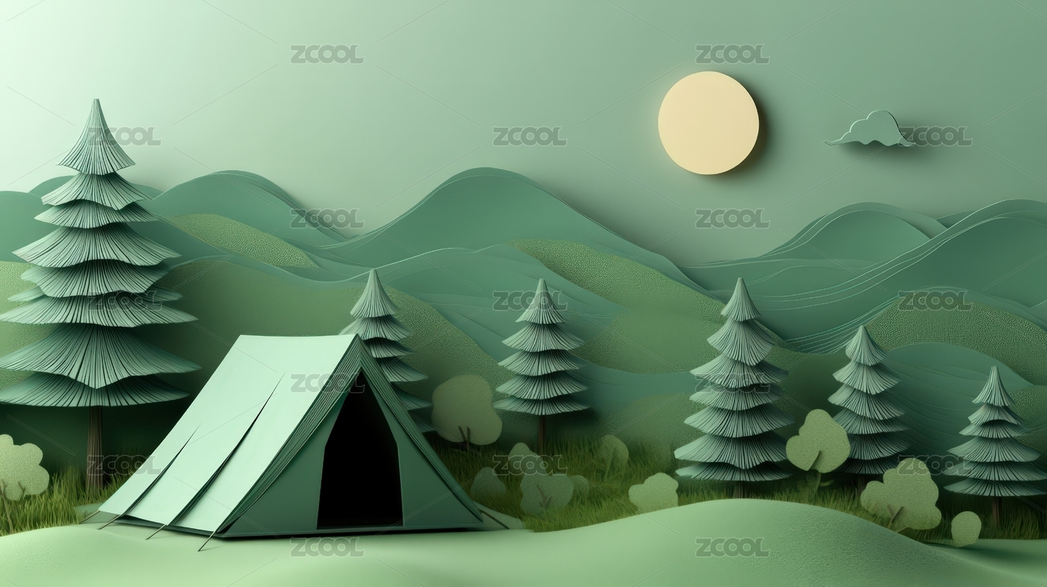 绿色山林帐篷图