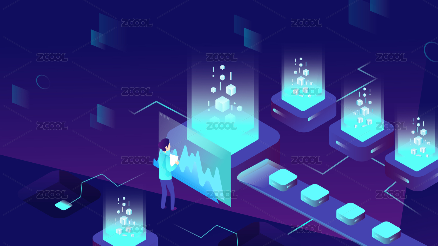 互联网通信网络连接数据安全分析等距插画
