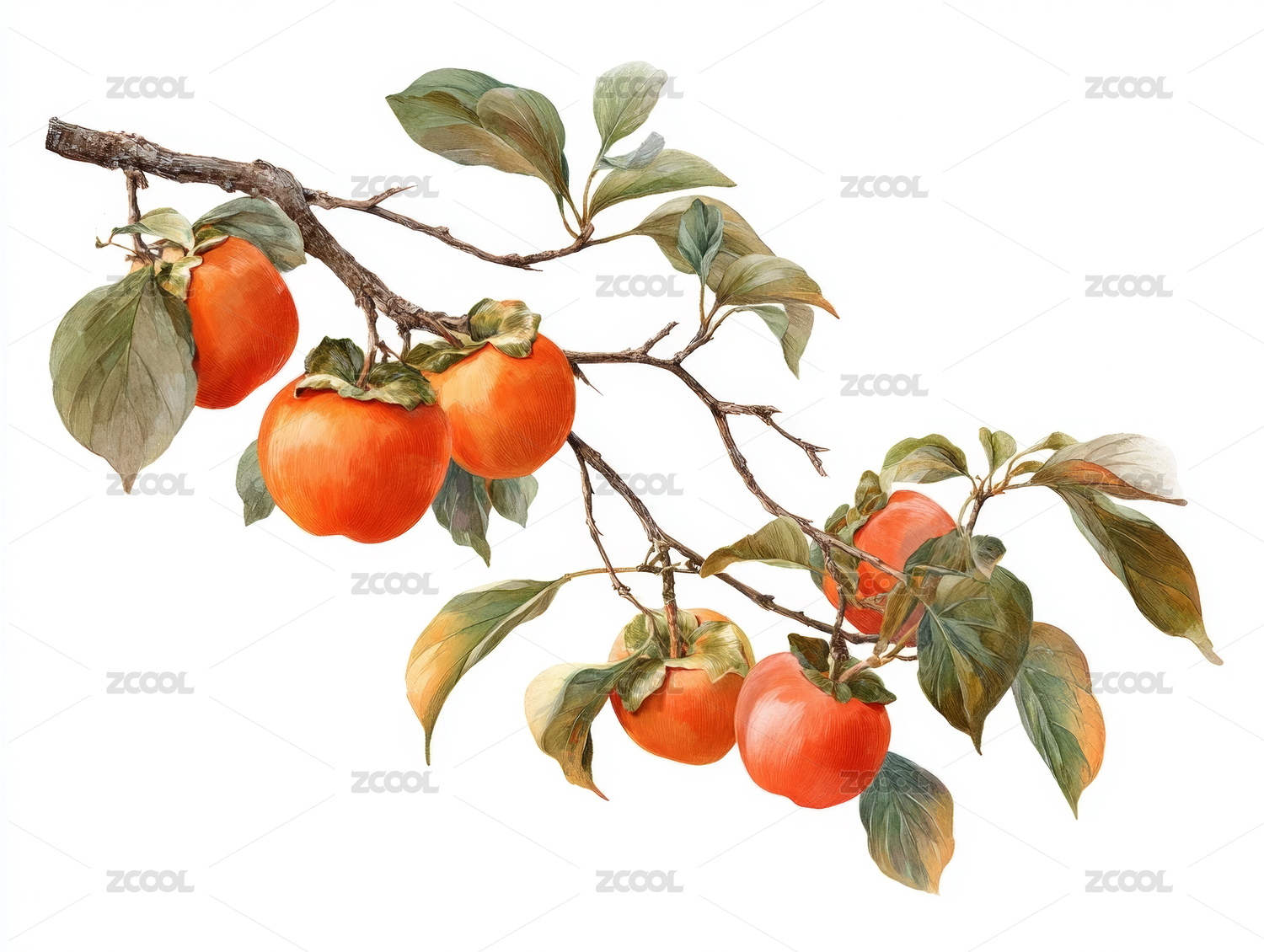 国潮,插画,中国风,AIGCFG,写意,柿子,水果,红柿子