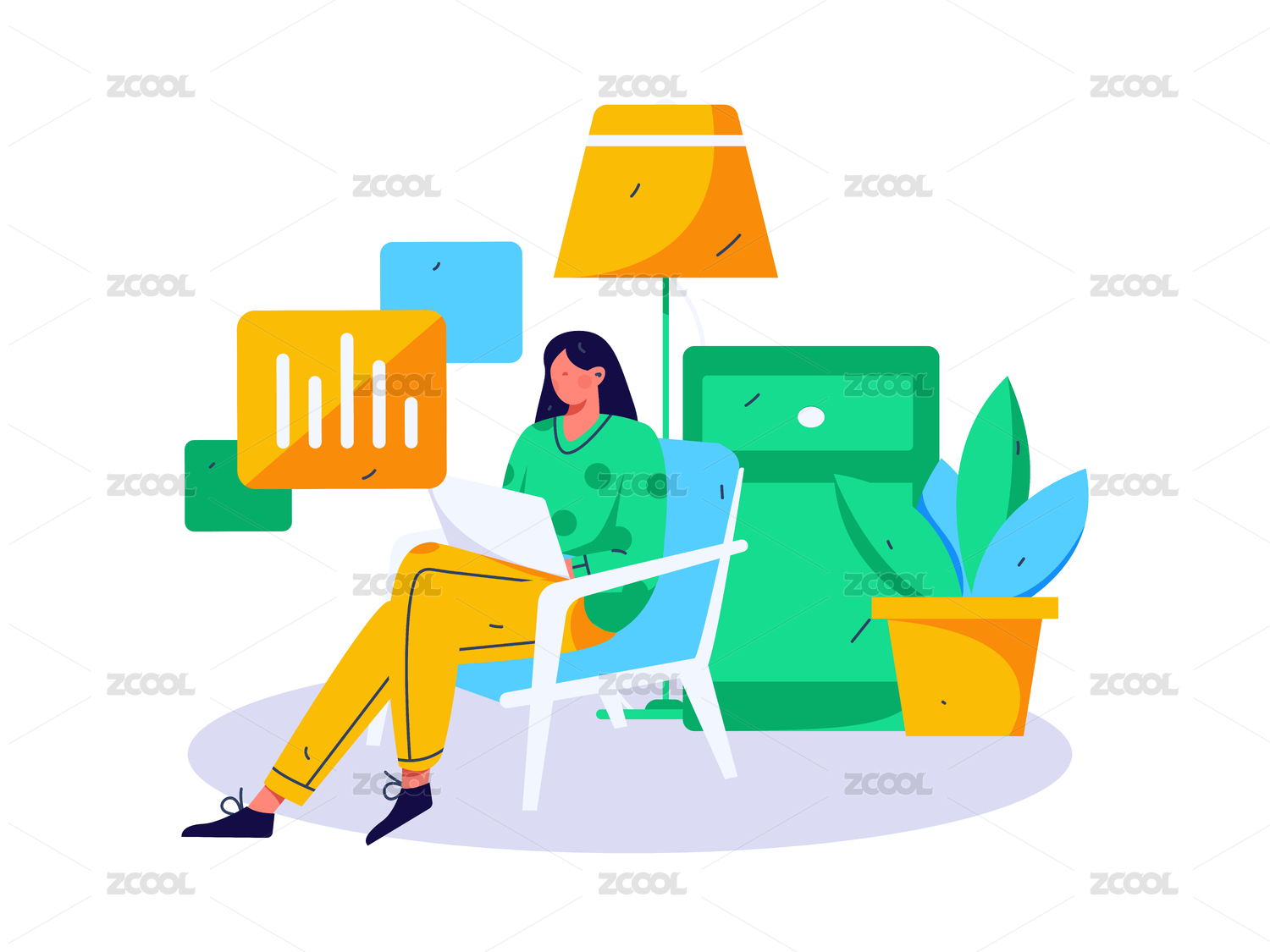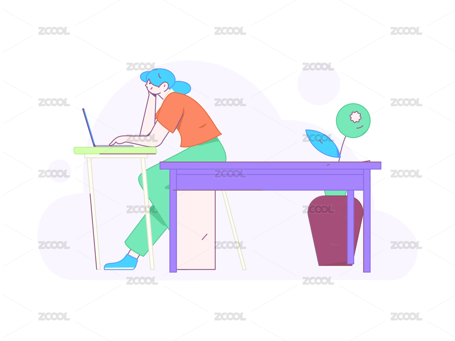 办公室居家办公学习扁平插画